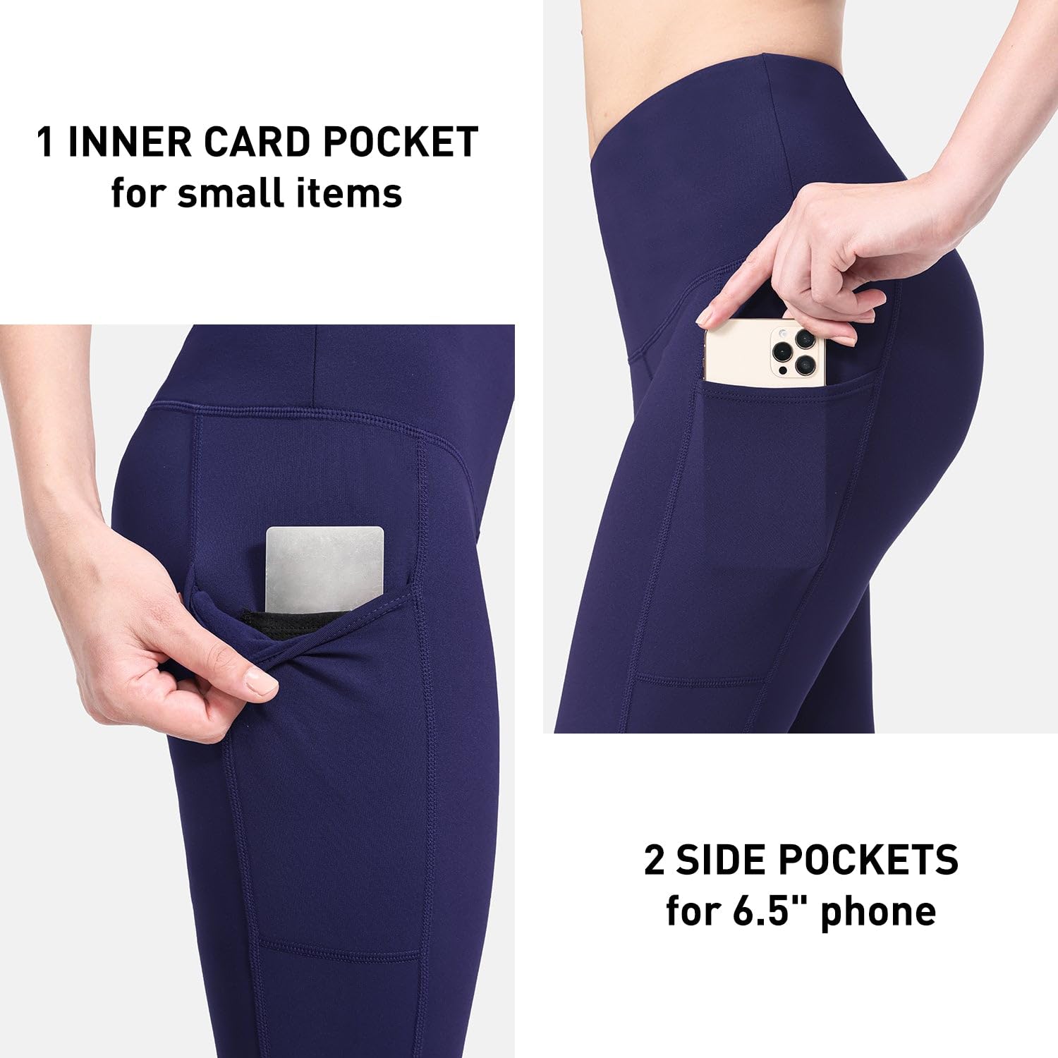 Serviceable Pockets: The winter leggings feature 2 side pockets, which are handy for larger mobile phones and keep them stay still in a run, while interior pocket and back pocket give your cards or keys more safer