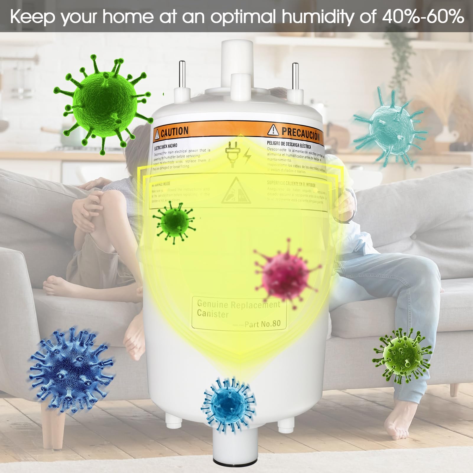 2PCS 80 Replacement Canister Compatible with AprilAire Steam Humidifier Models 800 & 865 Reliably keep house humidity: Upgraded housing material is heat-resistant, sturdy and durable to keep the humidifier working steadily during the cold months. 80 Replacement steam canister for AprilAire Steam Humidifier can maintain house humidity at an optimal level, providing a healthy and comfortable living condition, promote skin moisture , maintaining breathing health. Optimize humidifier performance: Replacing the 80 steam canister prevents internal clogging, stops rusting of the heating elements, and greatly improves the working performance of the steam tank and increase the life of HVAC system. Easy to replace: The 800 steam humidifier replacement are easy to install, no need other tools. Just check the electrode wiring and connect the top steam hose to the electrode wiring tightly and seal the o-ring to prevent leakage. The 800 replacement canister properly connected to an electrode generates an electric current that heats the water to boiling and exhausts the water vapor, allowing the vapor to diffuse through the house via the HVAC system. Package including: O-Ring*2 80 steam humidifier canister*2 Warm tips: 80 Humidifier canister’s life depends on water quality. Confirm electrode wiring before installing the 80 steam humidifier replacement. When the indicator light on the front of the panel is on, the 80 canister needs to be replaced.