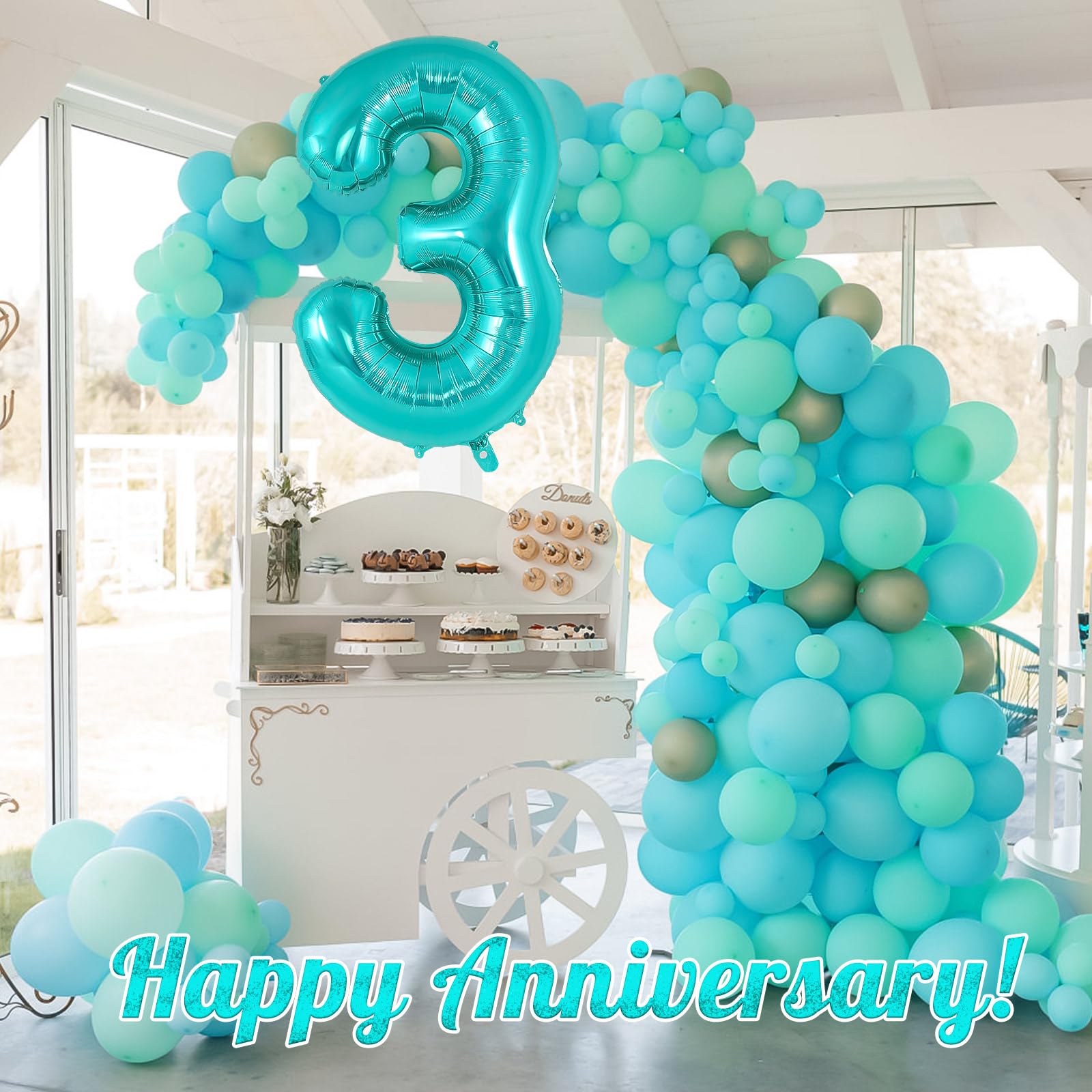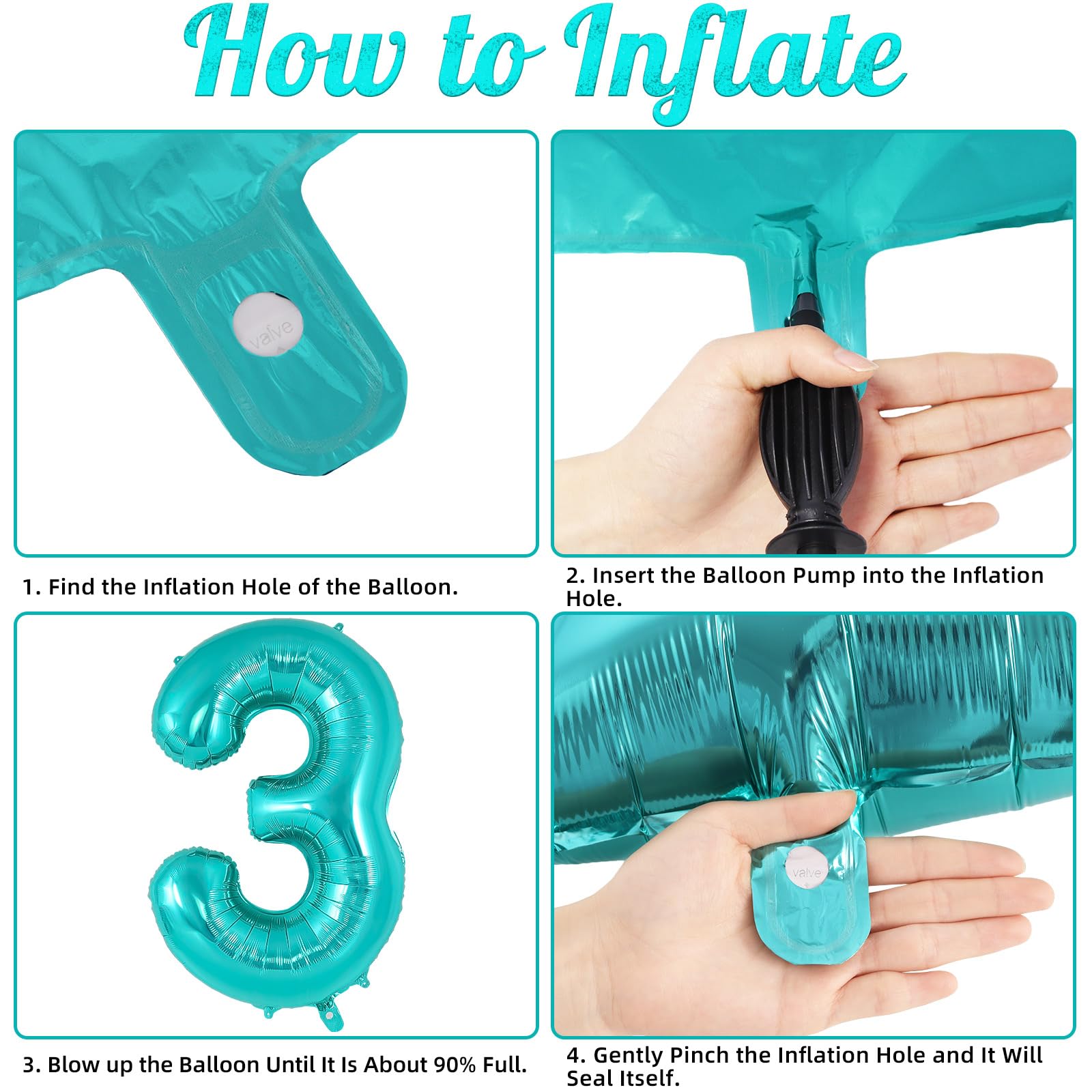 EASY TO USE: Inflate the balloon with air or helium by a balloon pump; pinch the inflation valve gently; then a big beautiful teal 3 balloon is there for you. So easy to do it!