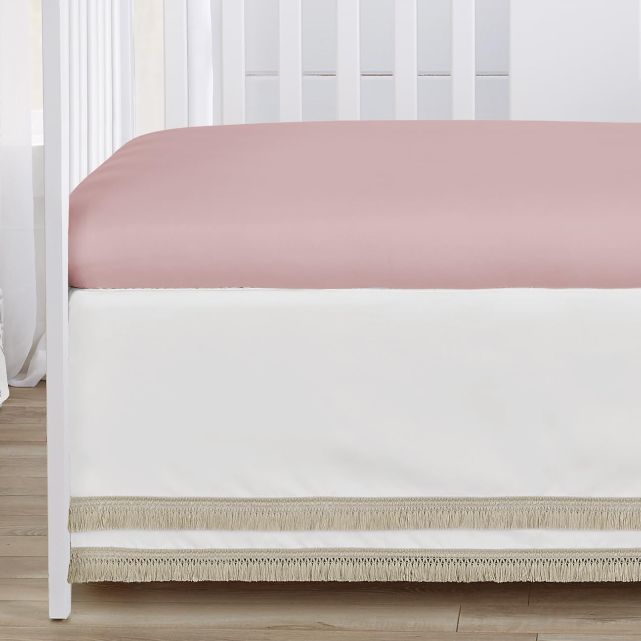BOHO PINK FLORAL THEME: This baby girl crib bedding set boasts a crib blanket featuring a hand painted watercolor flower garden print that reverses to an all over wildflower print. The solid white skirt is adorned with two rows of delicate macrame fringe detailing. The solid rose pink breathable crib sheet has elastic sewn around the bottom edge for a secure fit on most standard sized cribs. The matching diaper stacker keeps nappies conveniently organized. Machine washable. Tumble dry low.