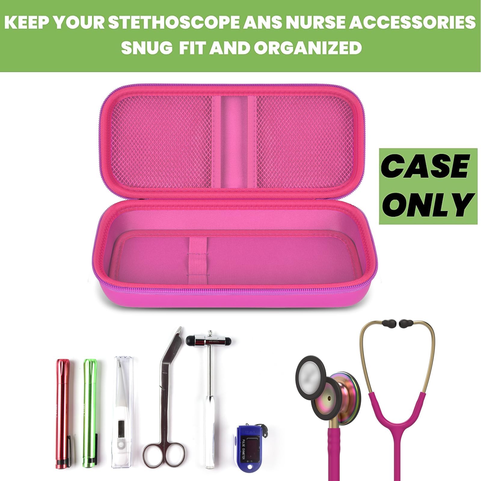 Stethoscope Case of Comprehensive Protection: This case is made of the hard EVA materials, the anti-static, shockproof layer and fluffy fabric inner layer fully padded and effectively absorb impacts, compact fully protect the stethoscope, neurological reflex hammer, medical thermometer, pulse oximeters, and other Littman stethoscope accessories. Prevent shaking and loss; avoid stethoscope breaking.