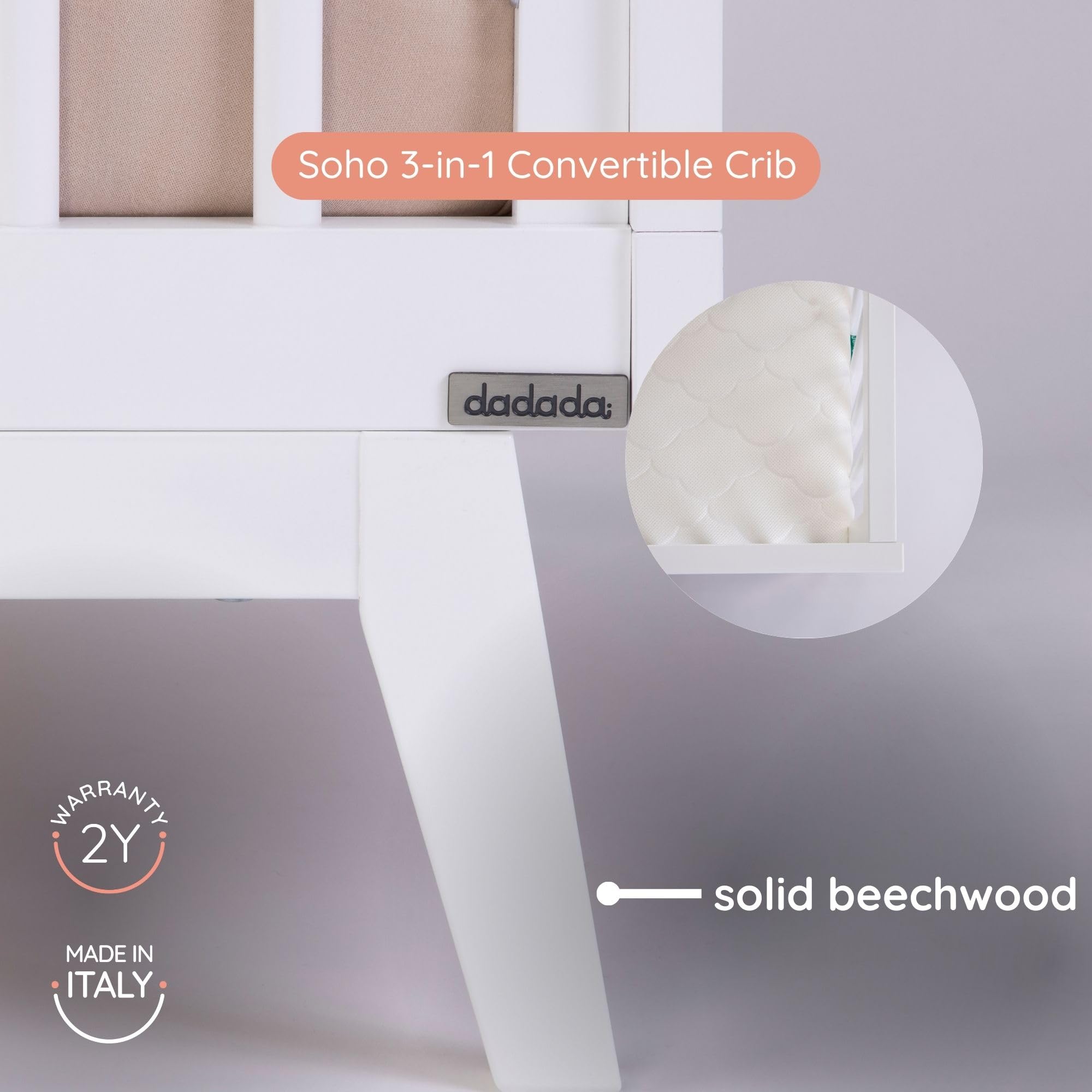 STYLISH & MODERN: Elevate your nursery with our modern baby crib. This wooden baby crib boasts not only aesthetic appeal but also thoughtful design. The dadada Soho baby crib is a blend of quality craftsmanship and smart design choices.