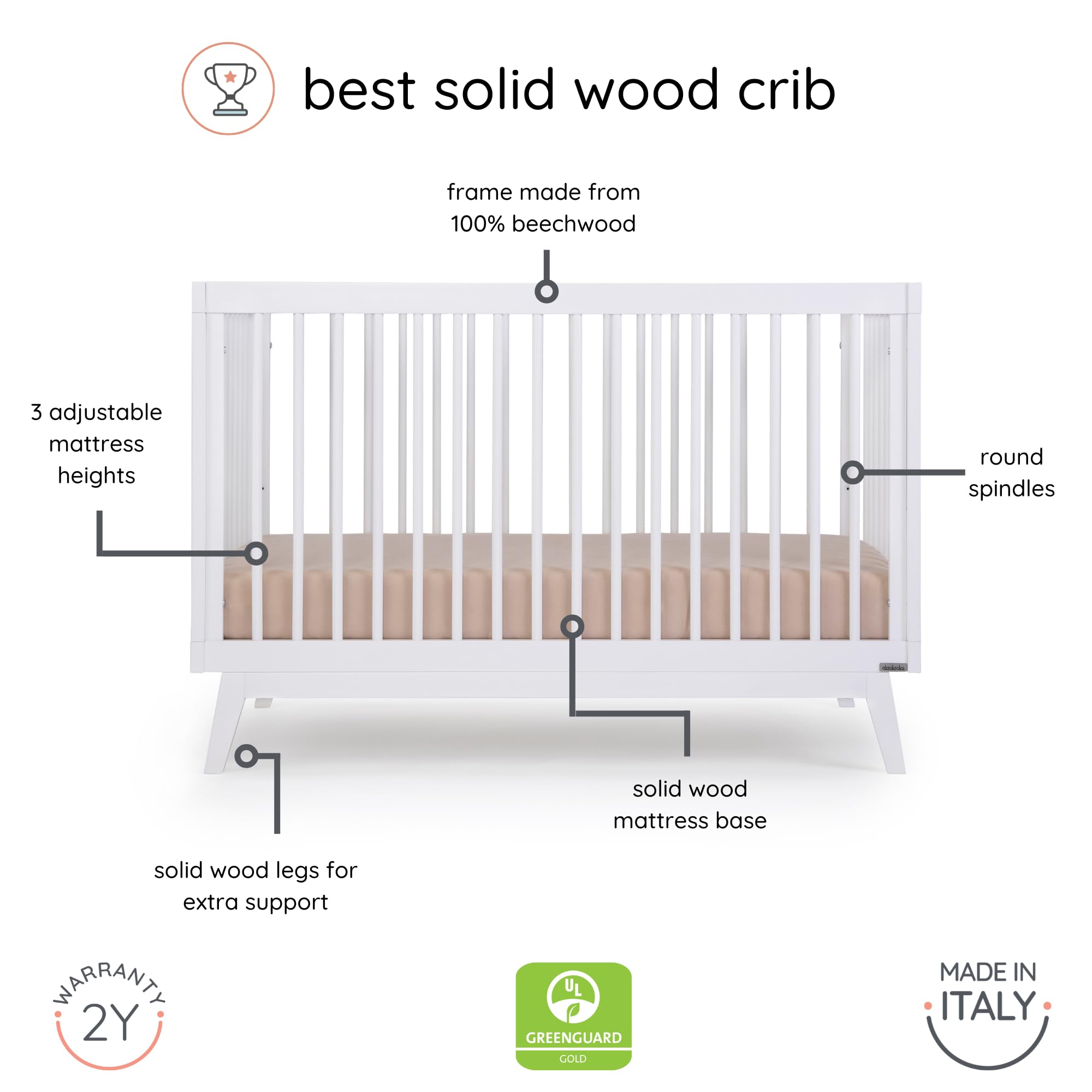 QUALITY: Made in Italy, we use the highest level of Italian manufacturing to create lasting pieces of baby nursery furniture. Measures 53.15 x 29.95 x 36.7 inches and made of solid beechwood. A great pick for small cribs for small spaces.