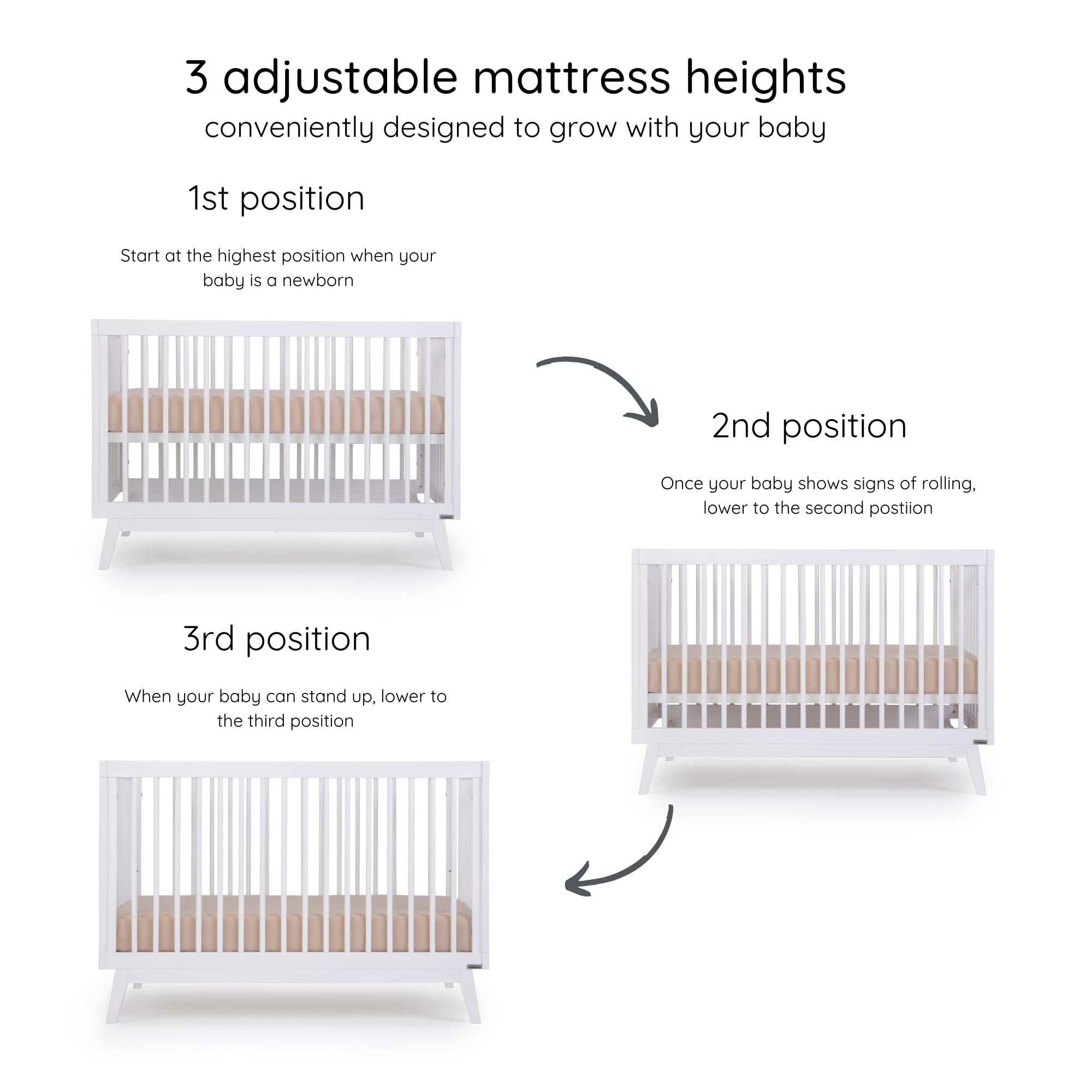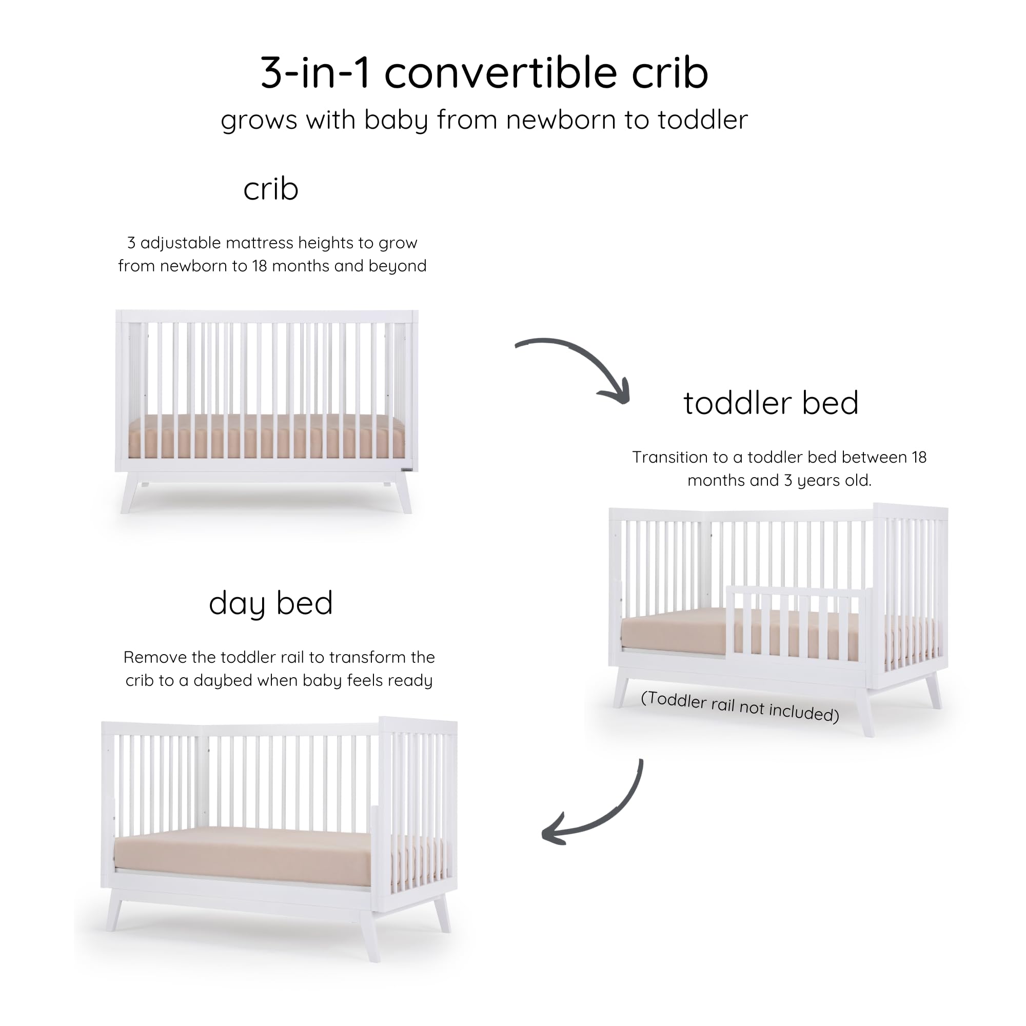 CONVERTIBLE: Give your kid room to grow! Adjustable mattress height makes it flexible for newborns to toddlers. Converts to a toddler bed or daybed with the toddler rail conversion kit (sold separately). Matching dresser also available.