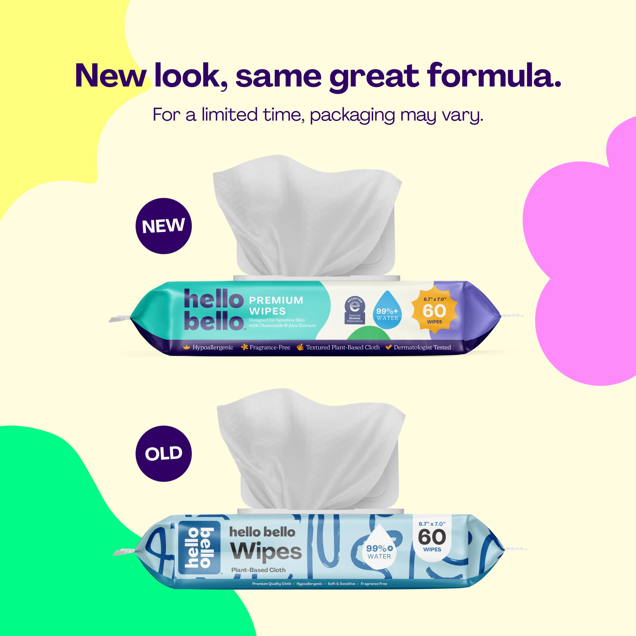 Kids are some of the messiest little critters you’ll ever come across. Hello Bello Wipes are here to help with whatever they throw at you (literally). They’re super soft, 99+% water, and include a botanical blend of Aloe and Chamomile extract, so you can trust them to help quickly soothe and clean baby’s delicate skin. And our textured plant-based cloth makes these wipes tough enough to handle any cleanup. Includes (18) 60ct packets of Fragrance-Free Baby Wipes for newborns and infants.