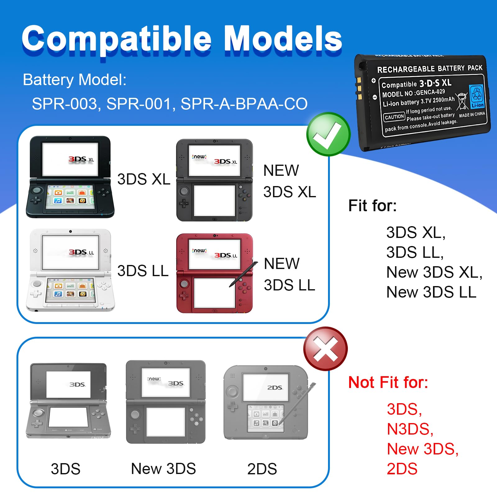 3DS XL Battery Pack Model: SPR003, SPR001, SPR-A-BPAA-CO, Please check your device model before purchasing (Not fit for 3DS, N3DS, 2DS)