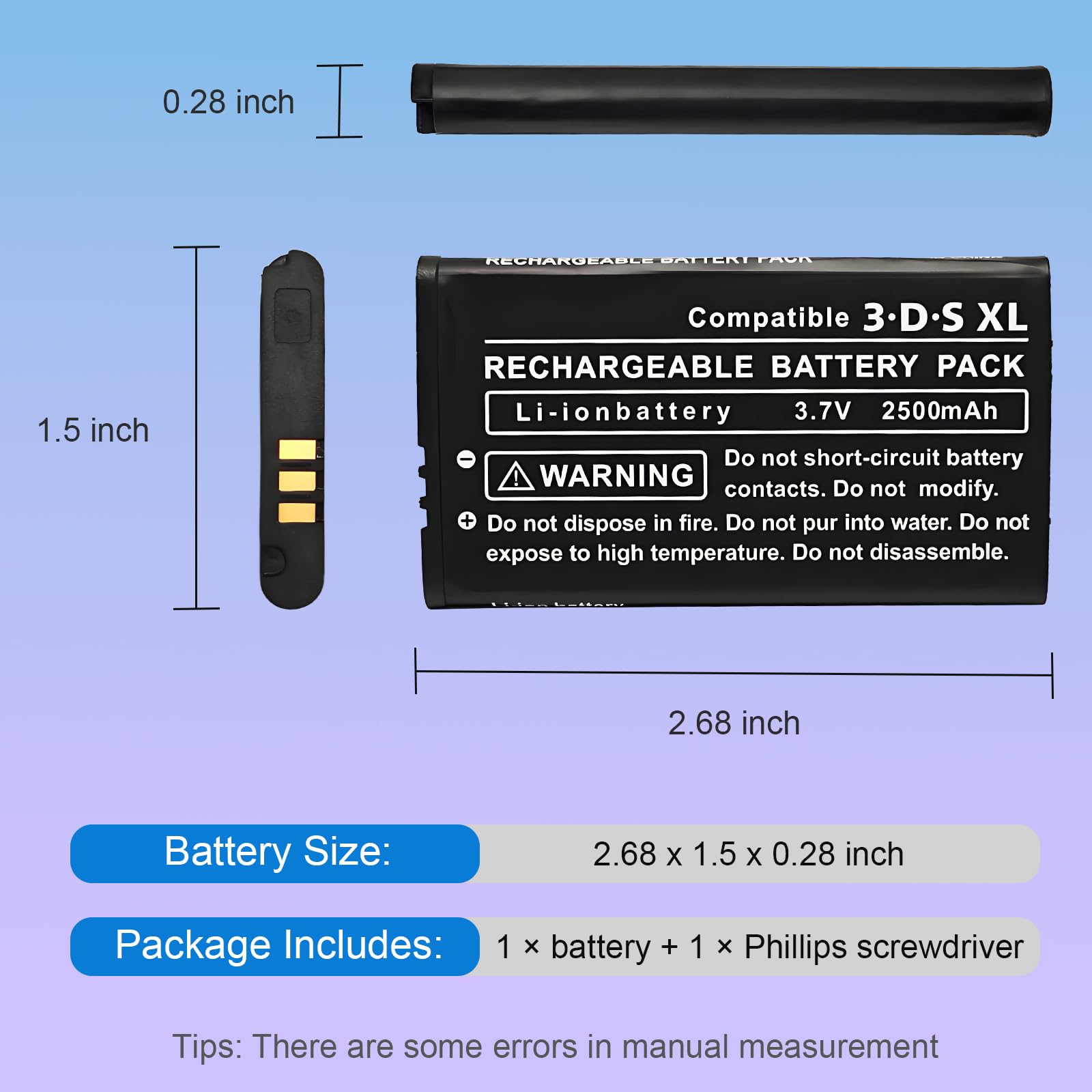 Safe to Use: The SPR-003 battery for Nintendo 3DS XL has a built-in microchip to prevent overcharging, over-discharging, short-circuiting, overheating, etc., to ensure the safety of the battery
