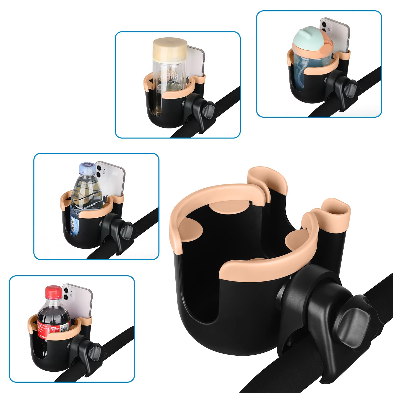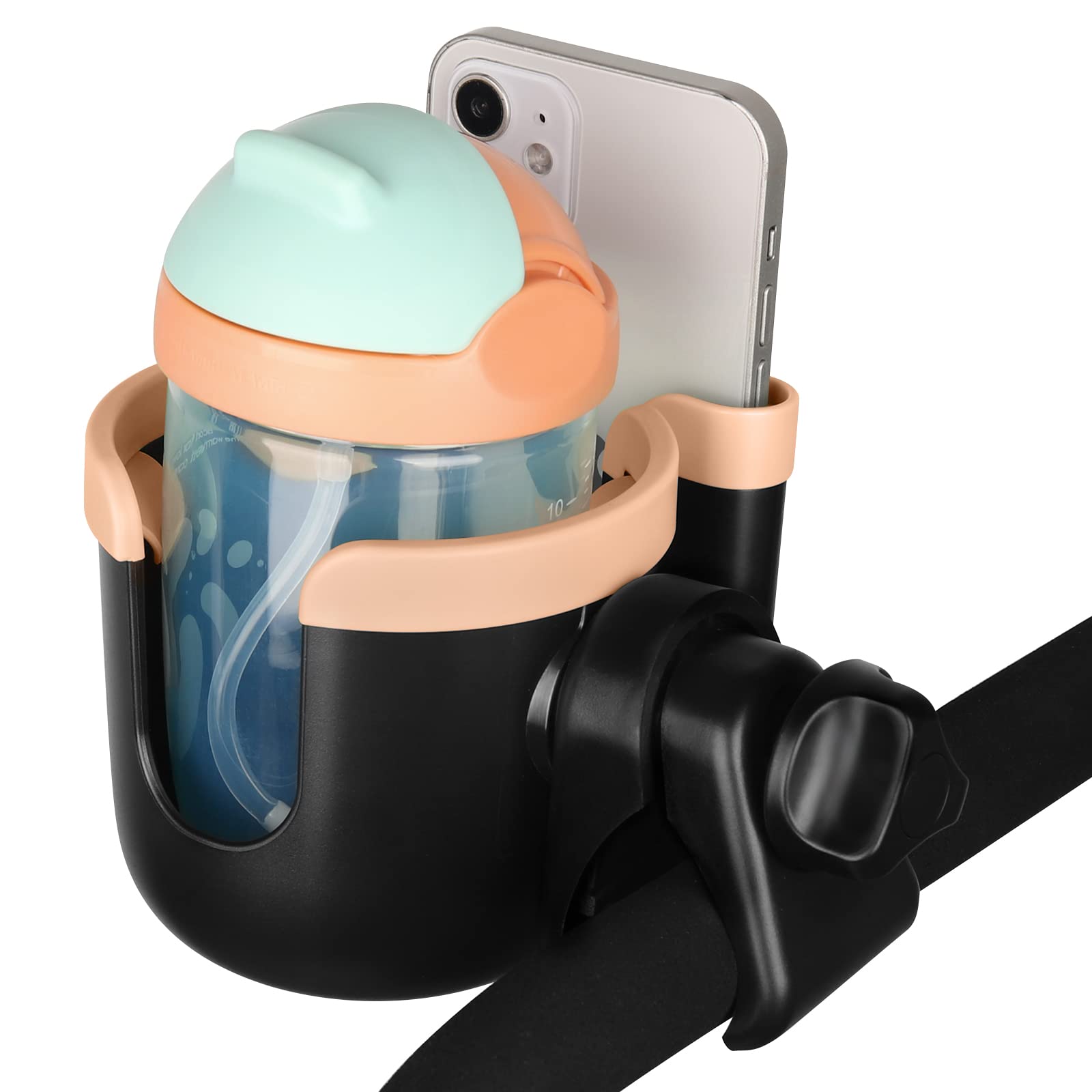 This 2-in-1 stroller cup holder with a phone holder, it can load drinks bottles and cell phone at the same time. You can see new messages, incoming calls in the first time when you are pushing a stroller or running on a treadmill. It is applicable to most cell phones on the market.