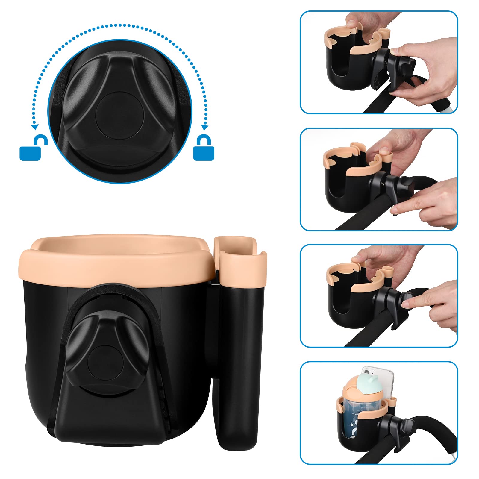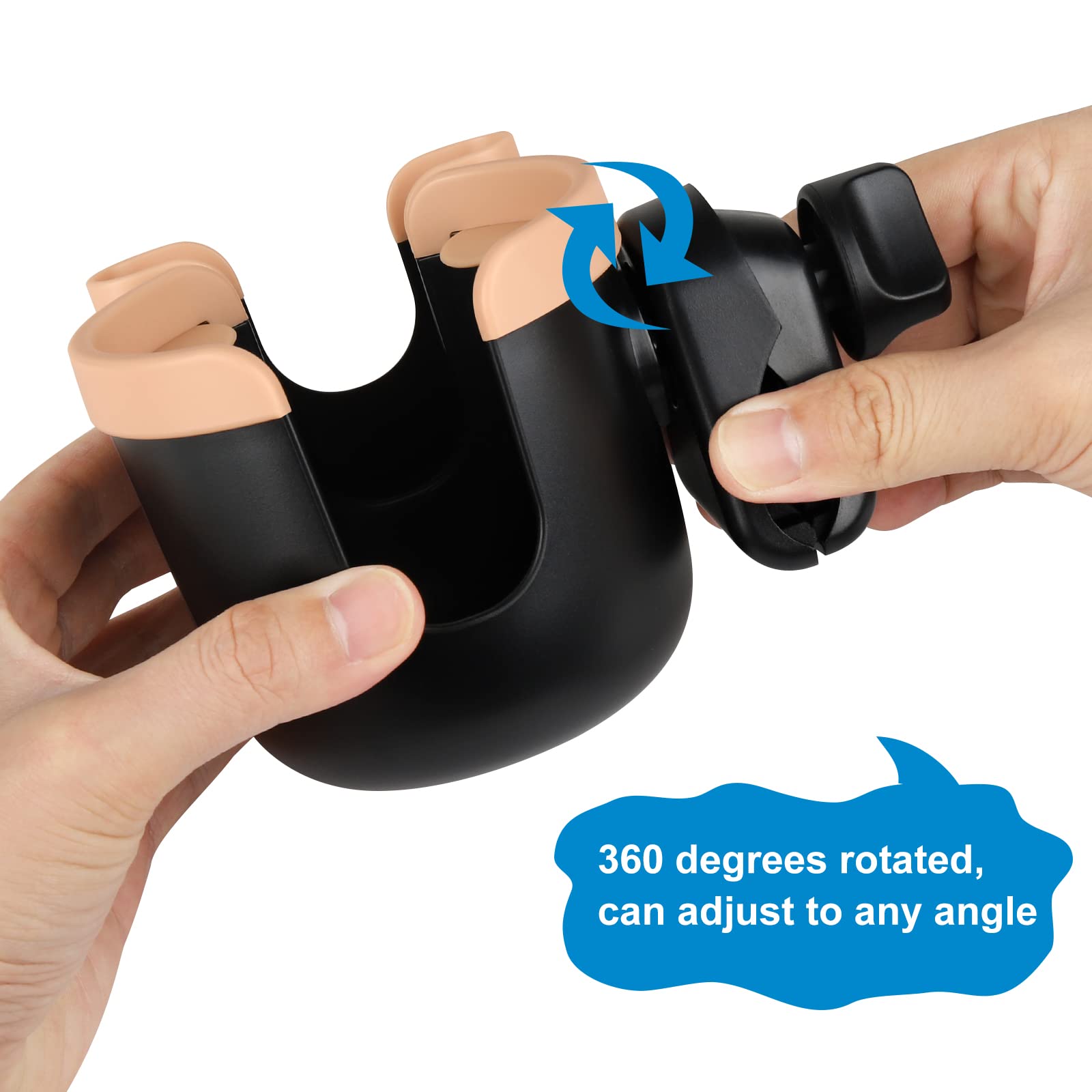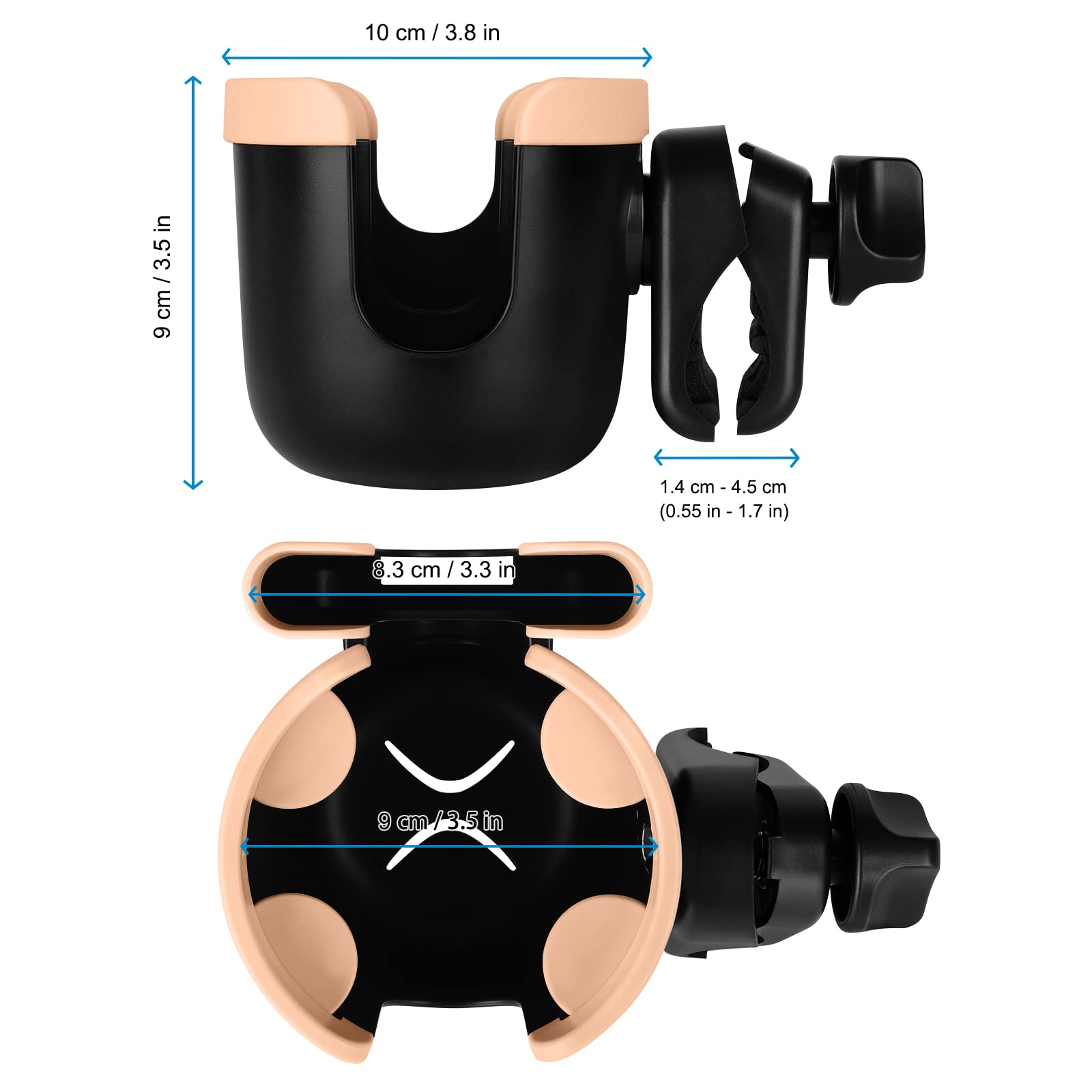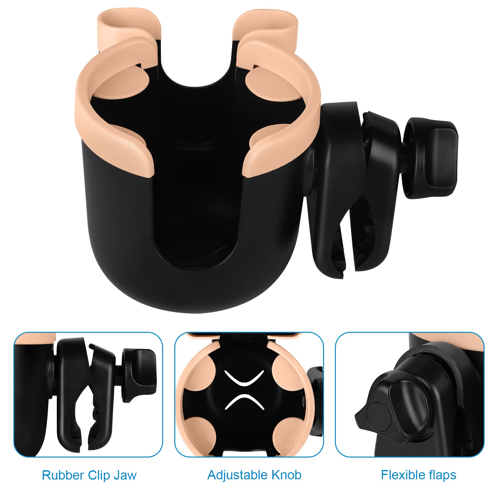 Easy to Use: This stroller cup holder attachment is made of durable materials. The ABS plastic and slip resistant rubber ensure the bottle keep steady even on the rough road. It is a "clip on" cup holder, you just need to clamp on anywhere you like. Easy to install or remove.