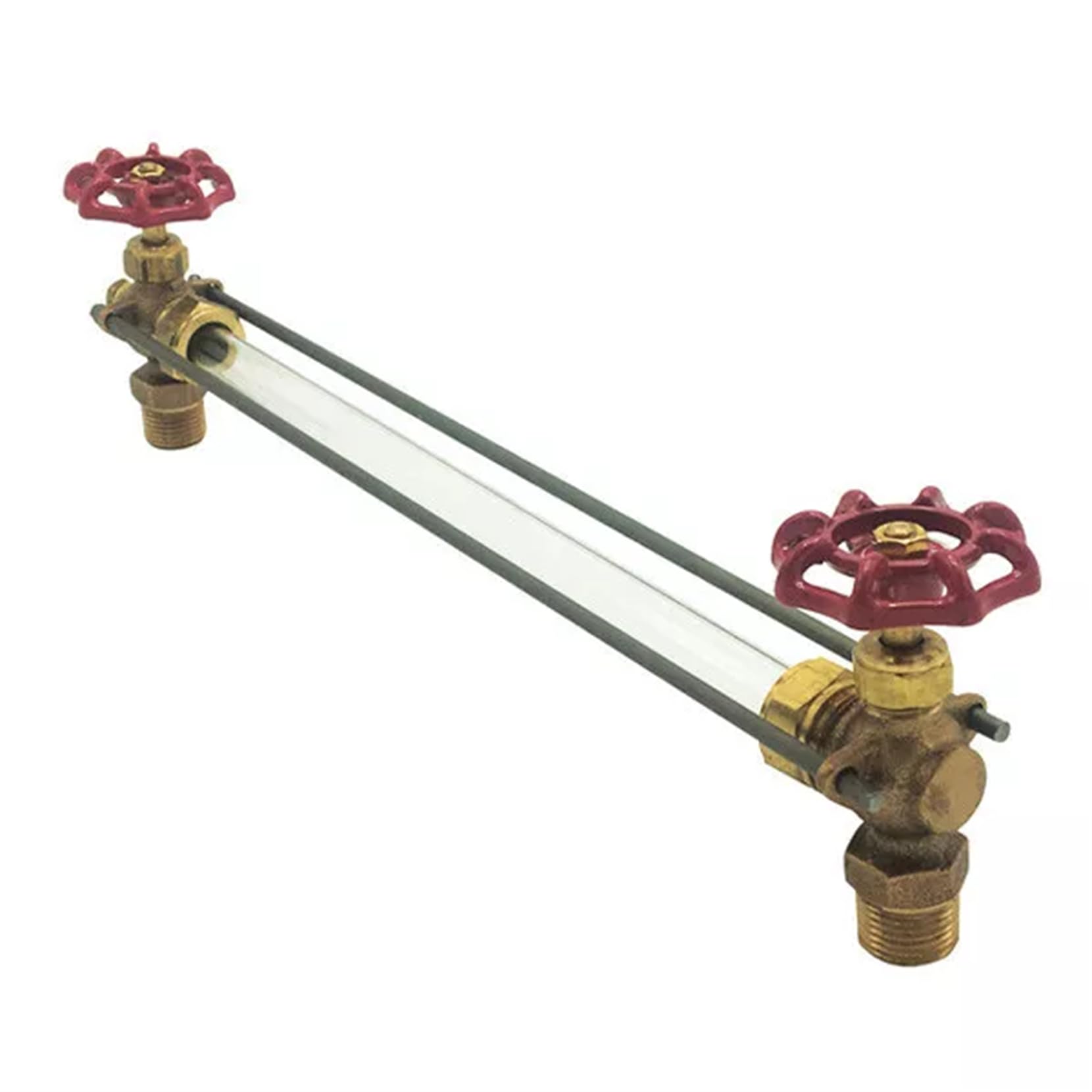 HVAC 1/2" Boiler Sight Gauge Glass Complete Set Kit With 5/8" X 12" Glass Complete Boiler Gauge Glass Set Brass Valves are 1/2" NPT. 12" long glass Glass has 5/8 inch outside diameter. Includes rubber washers, friction washers, and rods Used in residential and small commercial applications