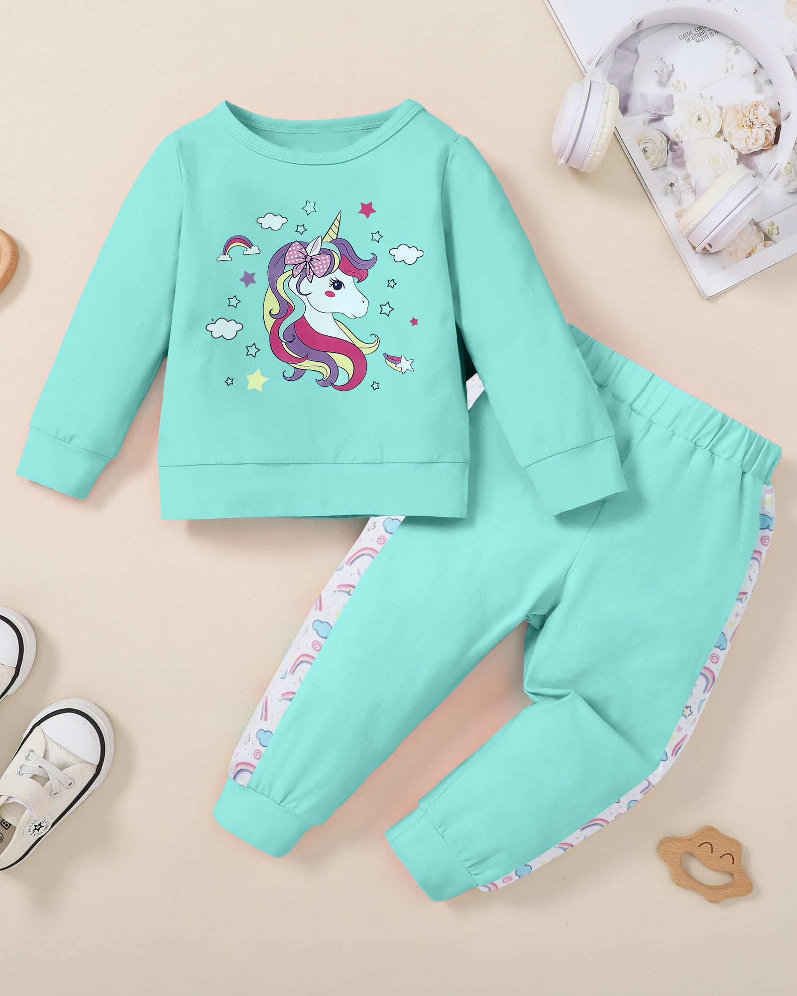 Size available: For unicorn baby girl clothes 12-18M, 18-24M toddler girl sweatshirt, 2-3T girl clothes, 3-4T girl jogging clothes, 4-5T toddler girl fall winter outfits.