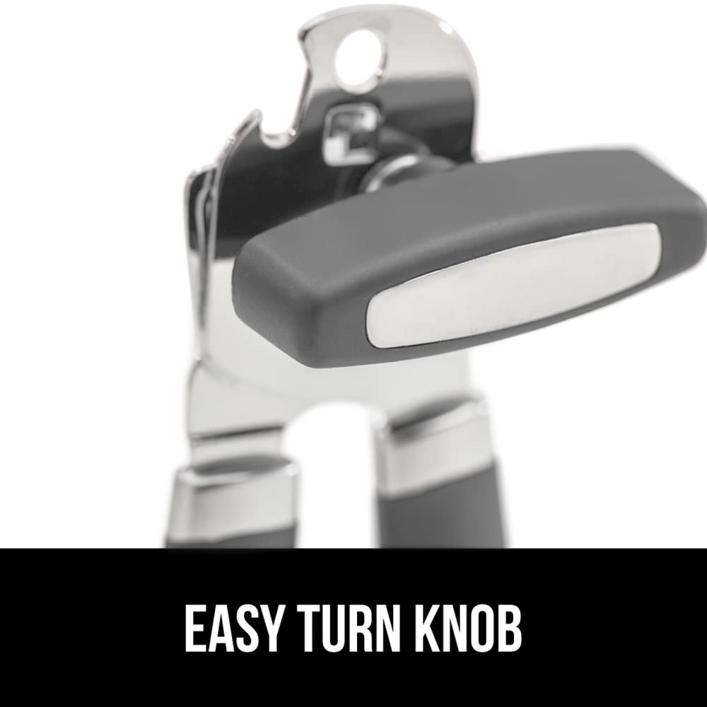 HEAVY DUTY CONSTRUCTION FOR EASIER OPENING: effortless can opening is here; the can opener features an extra large turn knob that allows you to easily open the can with little effort, so you work with the motion instead of against it; also includes stainless steel construction for a seamless cut and oversized handles that make for an easier grip