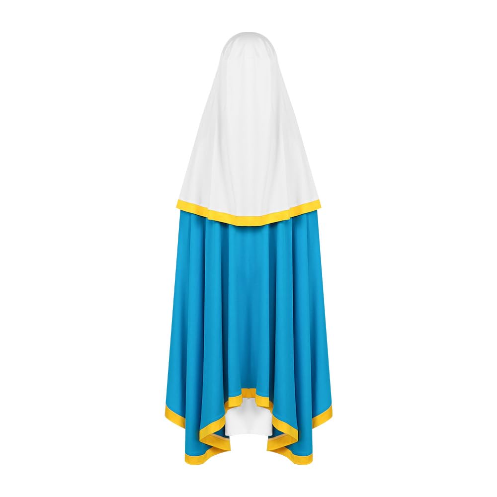 CLASSIC RELIGIOUS VIRGIN MARY COSTUME:Perfect for girl's christ religious virgin mary costume biblical times mary costume cosplay,virgin mary costumeChristian easter beauty pageants,evening party,holiday celebrations,costume parties,dress-up play,photography,fun nights costumes,birthday party and so on.