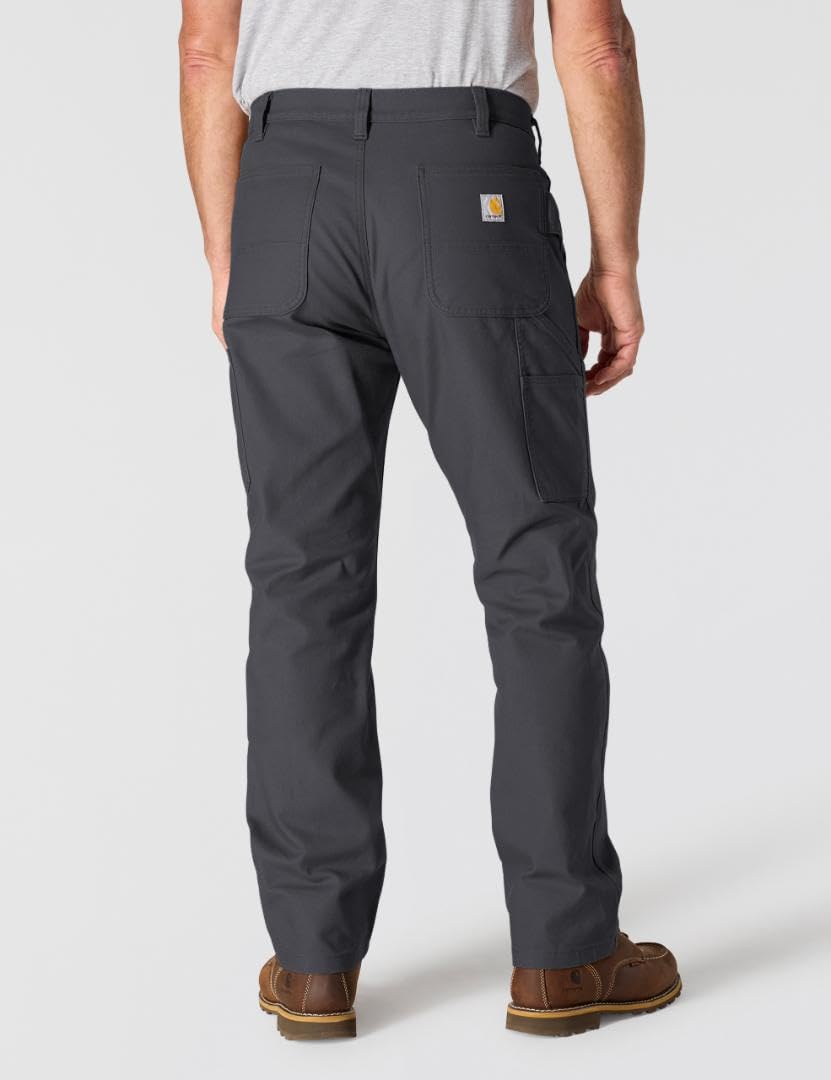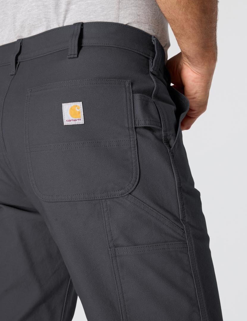 Description A workwear essential for any trade, these men's pants feature Carhartt's classic duck canvas with built-in flex for easy movement. Multiple tool pockets and a utility loop keep workday essentials within reach. A loose fit creates a generous fit through the seat and thigh for easy movement