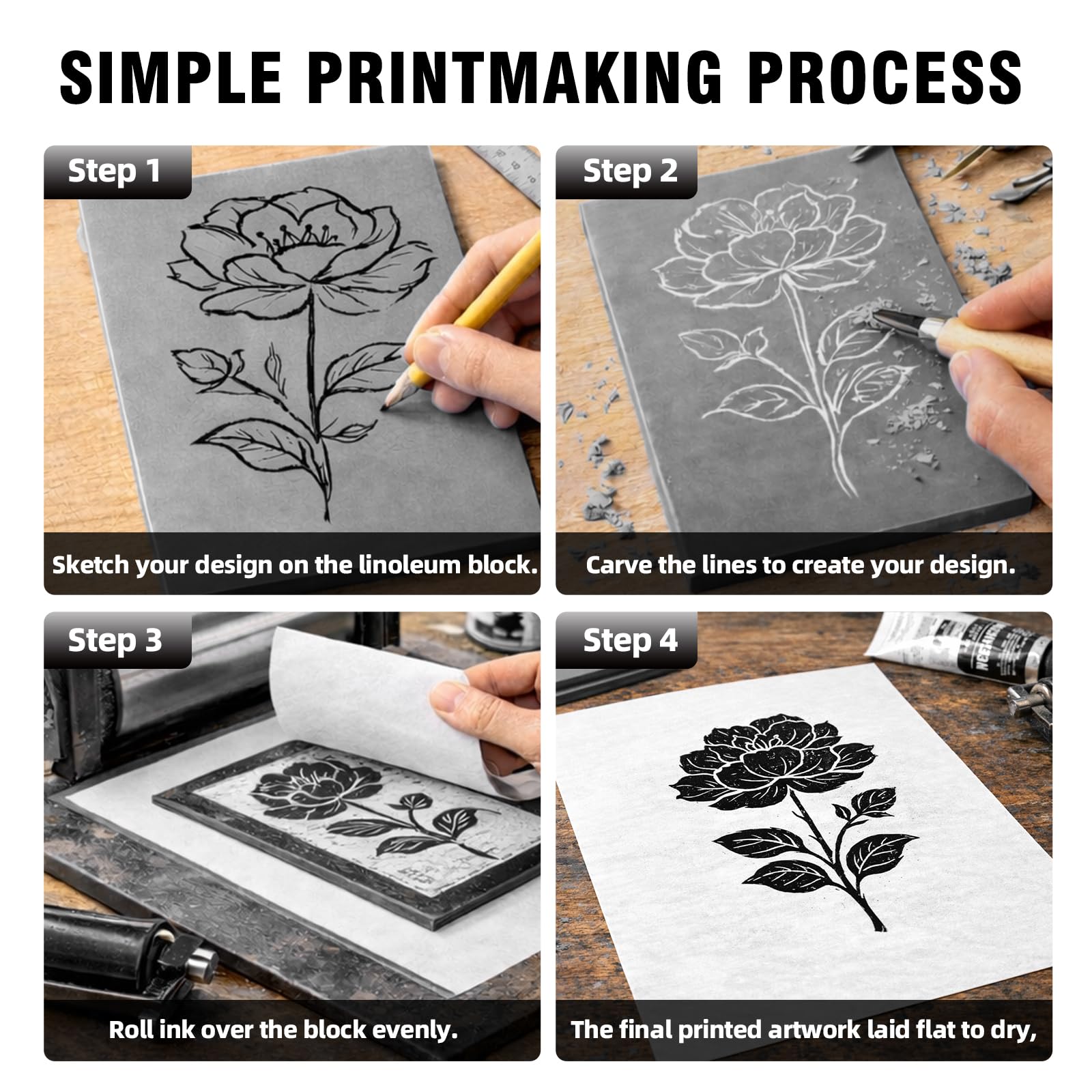 Wide Applications: Our easy-cut linoleum will not crack or break, perfect for indoor and outdoor activities. You can effortlessly create your stamps or printing blocks in any style in the office, in school, or at home, suitable for beginners or professionals.