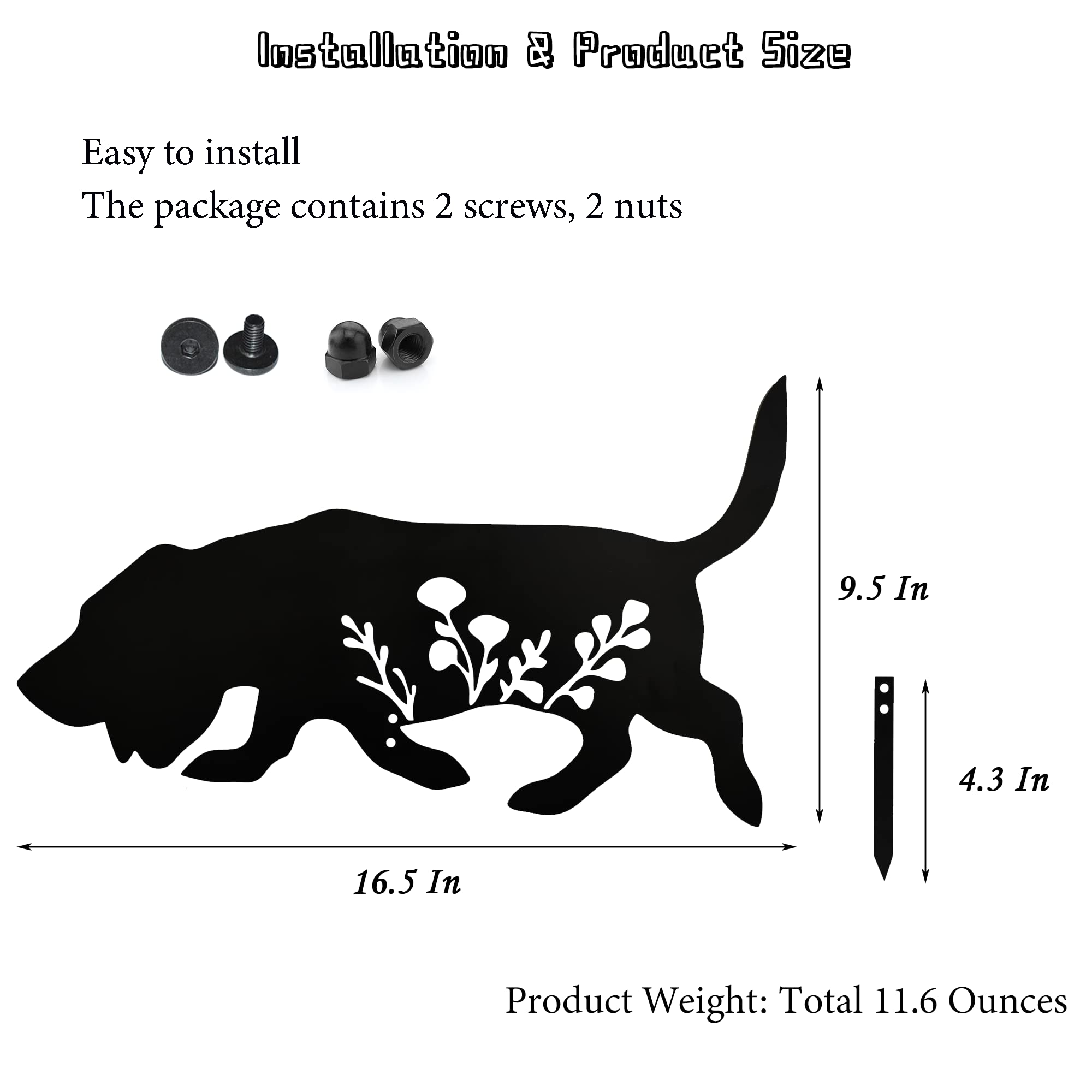 【EASY TO INSTALL】This metal dog decoration is designed with 2 holes for easy install. There are 2 expansion screws and nuts inside the package so you can easily connect the body part and stake.