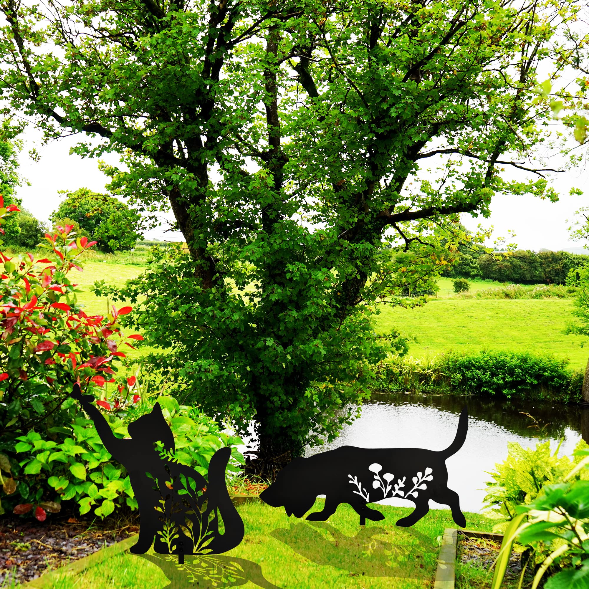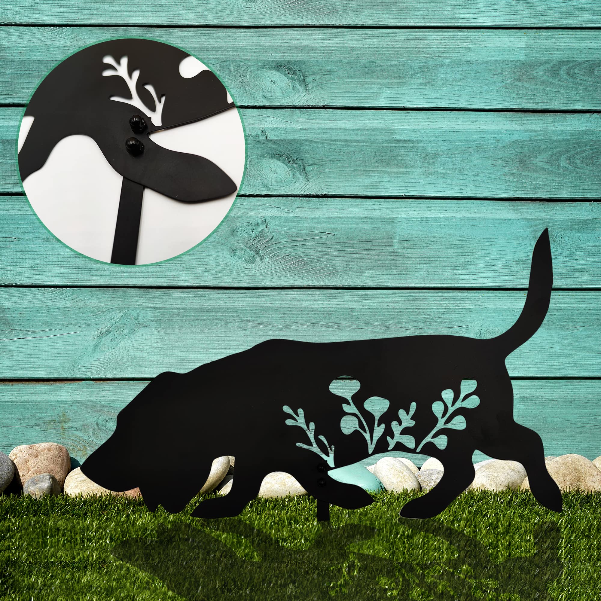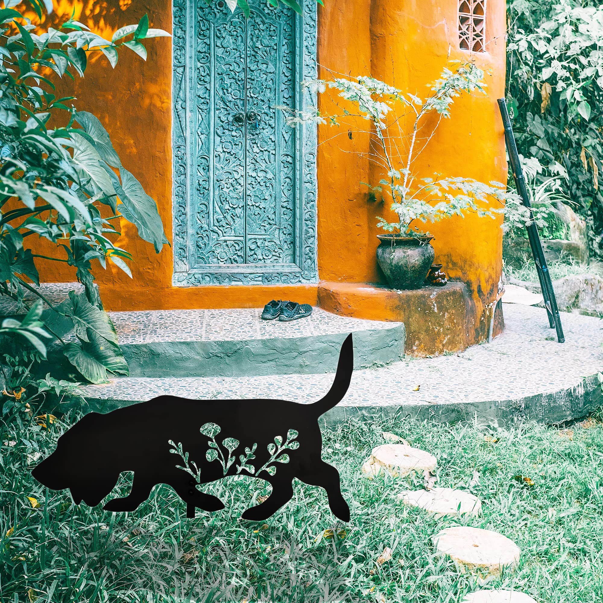 【CUTE DESIGN】 Our metal dog garden art is designed with a cute black dog hunting in the garden. The exquisite laser cutting technology of this metal wall decor makes the wildlife scene looks lifelike.