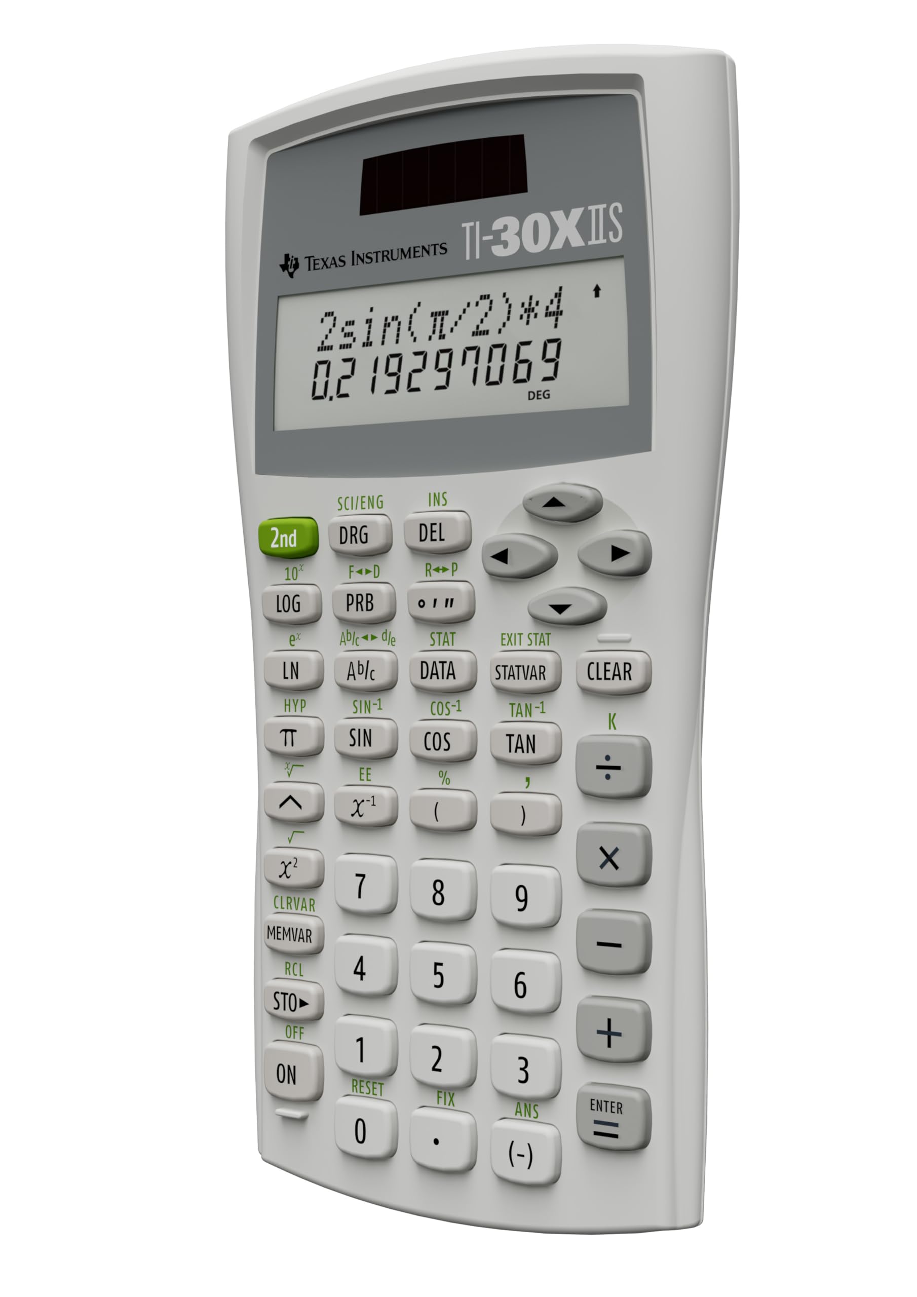 Fundamental, two-line calculator combines statistics and advanced scientific functions for high school math and science.