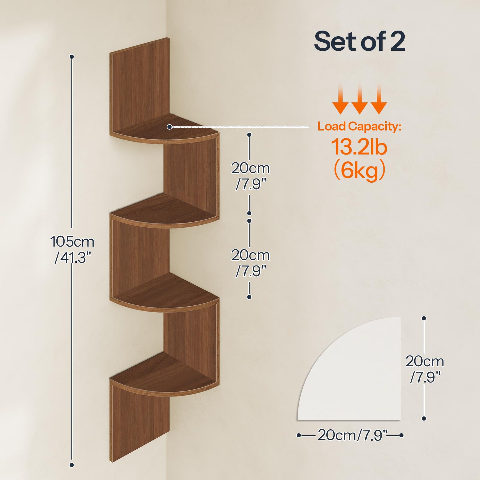 Maximized Space for Easy Storage: This 4-tier floating corner shelves for wall is your savior! Its clever design maximizes wall space with set of 2 storage shelves, each spaced 7.9" apart, providing the perfect spots to neatly organize books, photos or other items