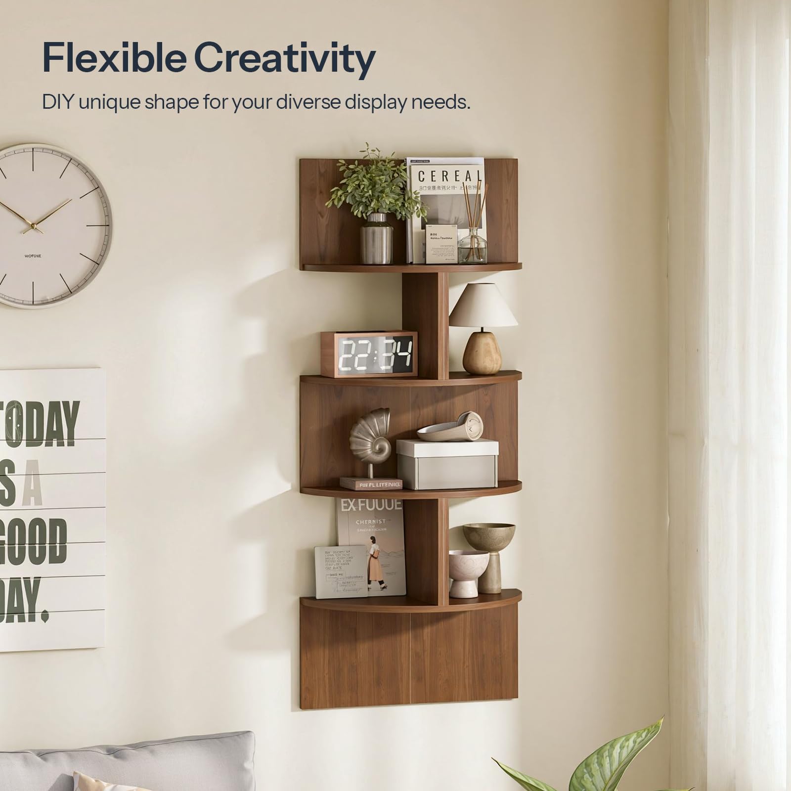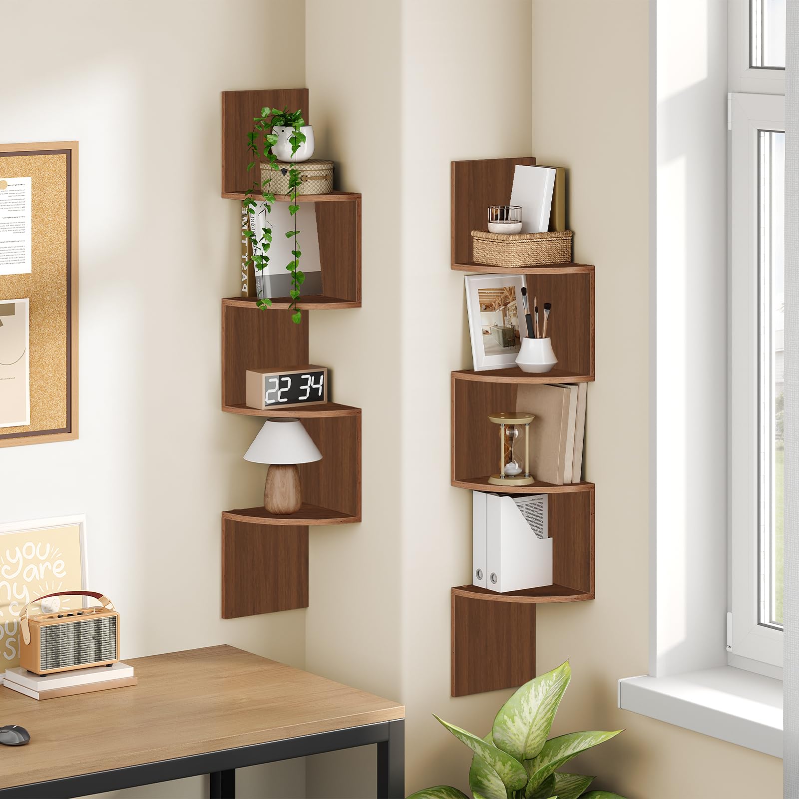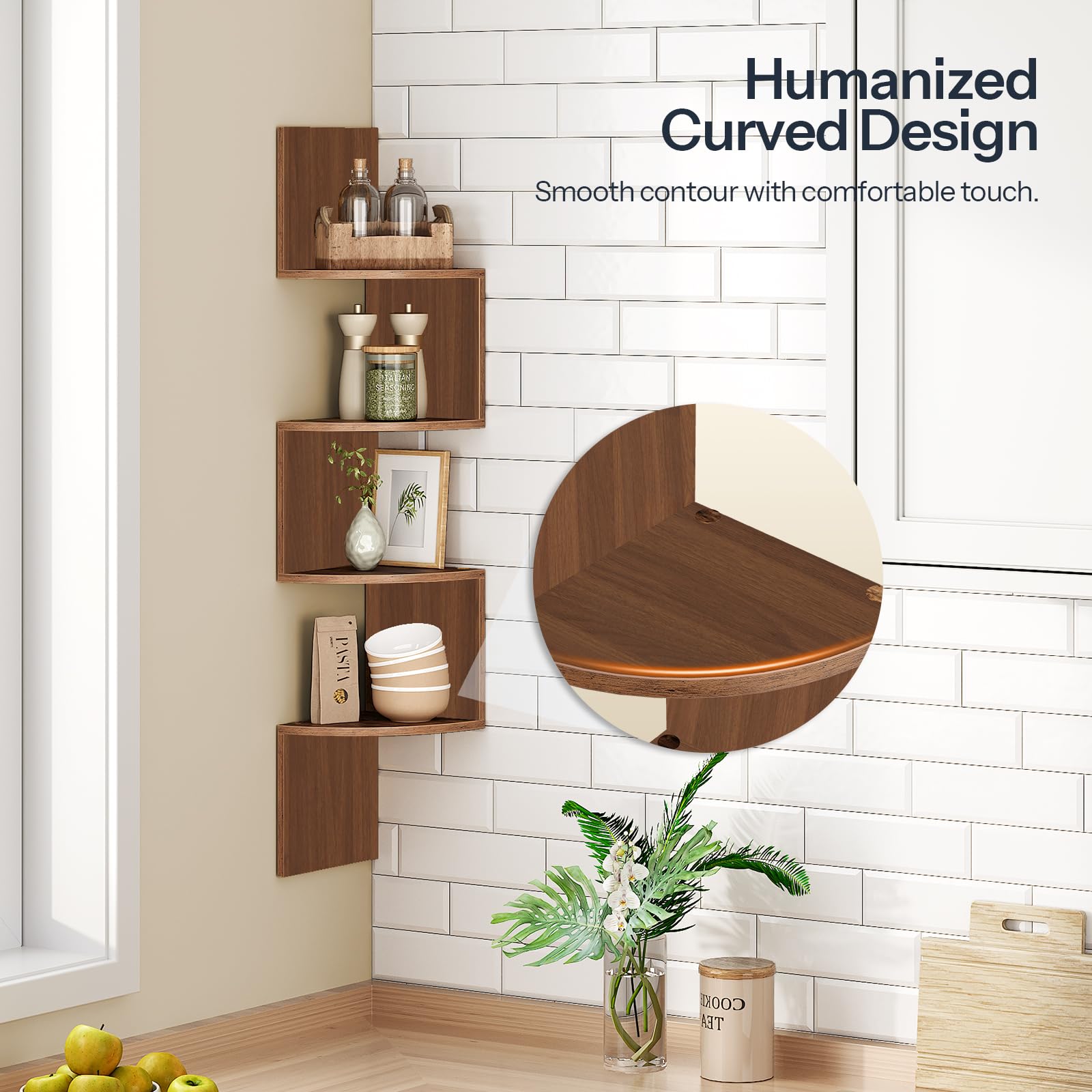 Retro Style with Modern Functionality: This set of 2 floating corner shelves wall mounted incorporates a zigzag design with curved shelves, exuding a strong rustic charm. This corner shelves for wall is a practical storage solution that adds a unique touch to your living room or office