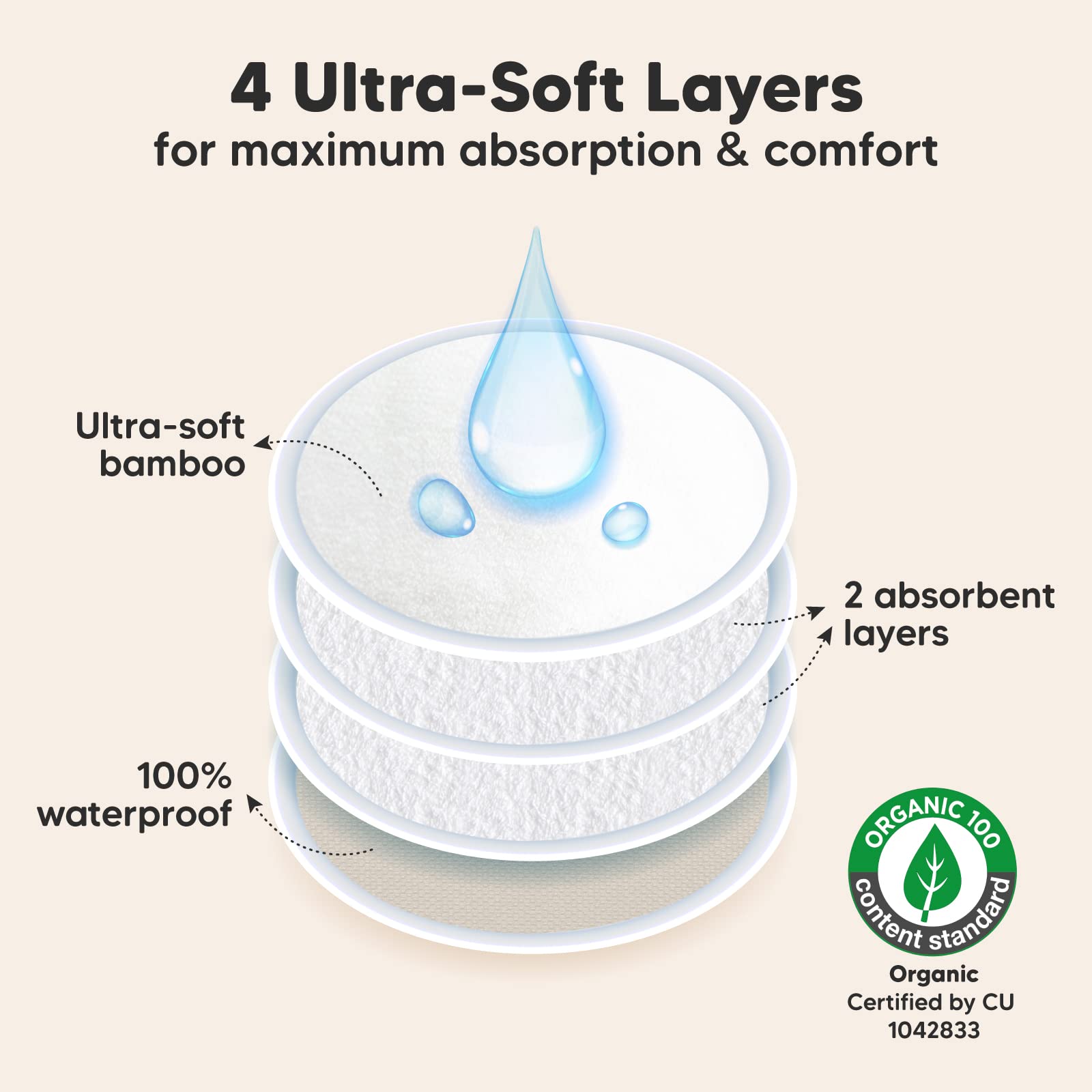 Great For Leakages – Leakage is a thing of the past with our 4-layer nursing pads. KeaBabies Nursing Pads feature three layers of ultra-absorbent viscose derived from bamboo, sealed with a protective waterproof outer layer for extra security on the nipple pads. Tip: If you experience a heavy flow, please replace breast pads every 5-6 hours.