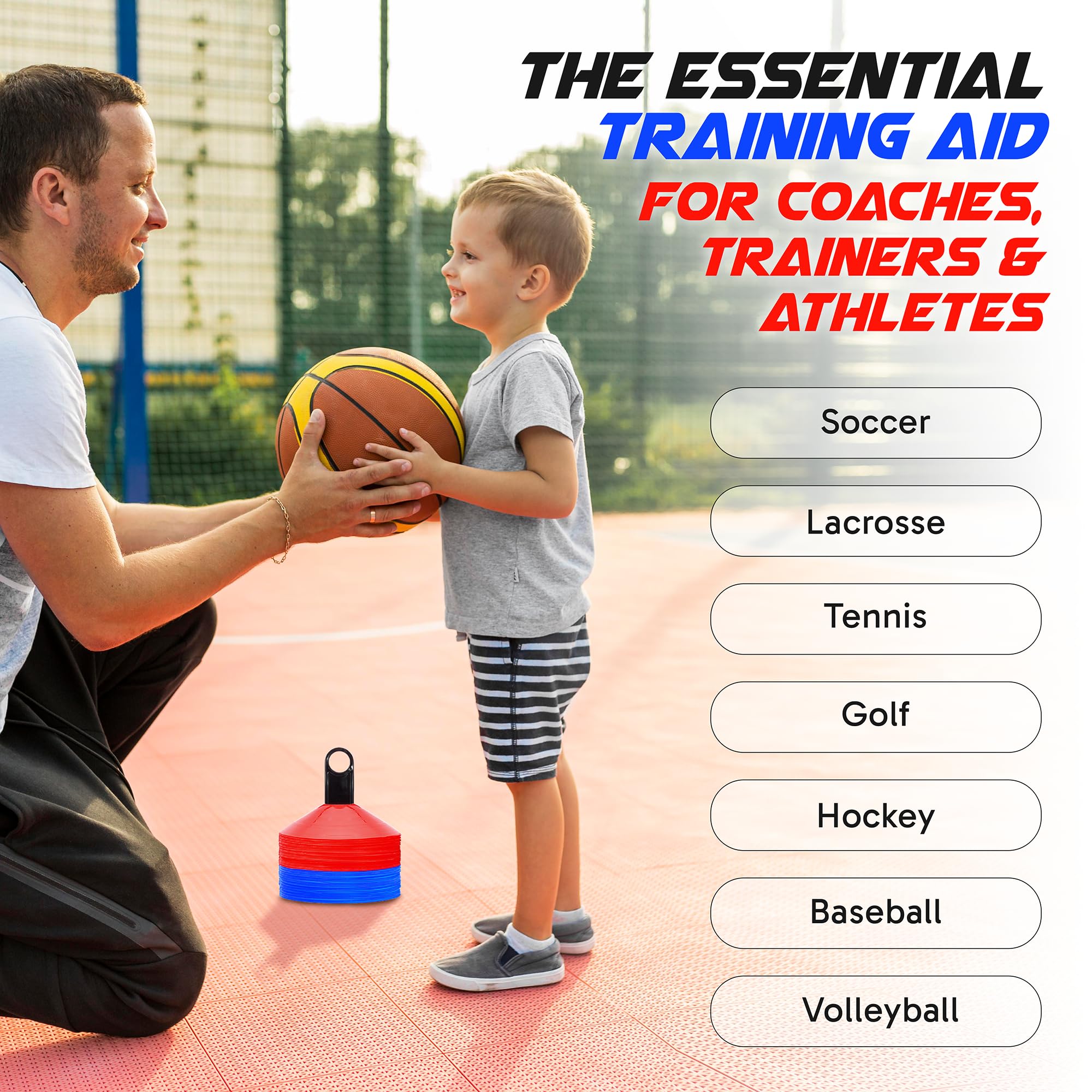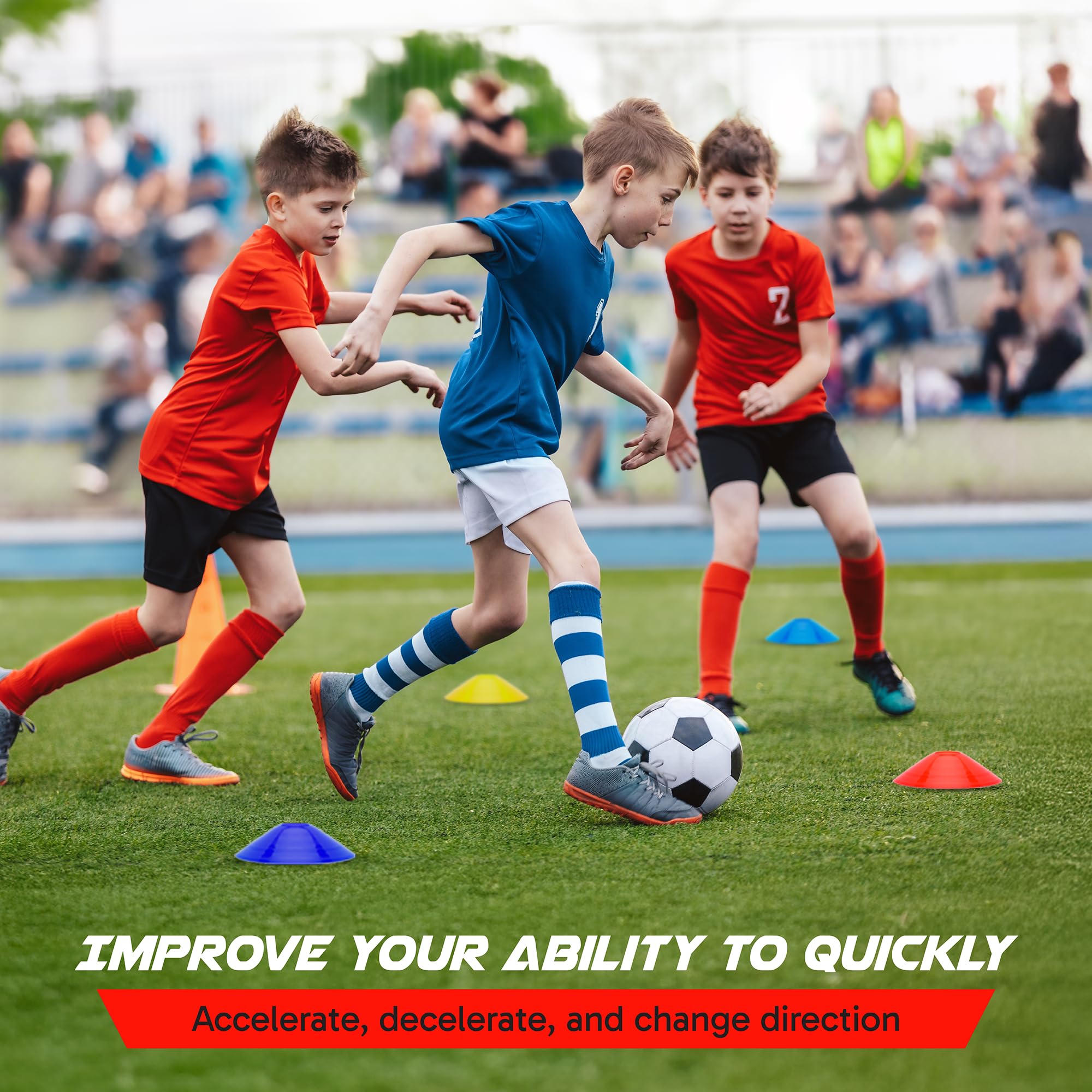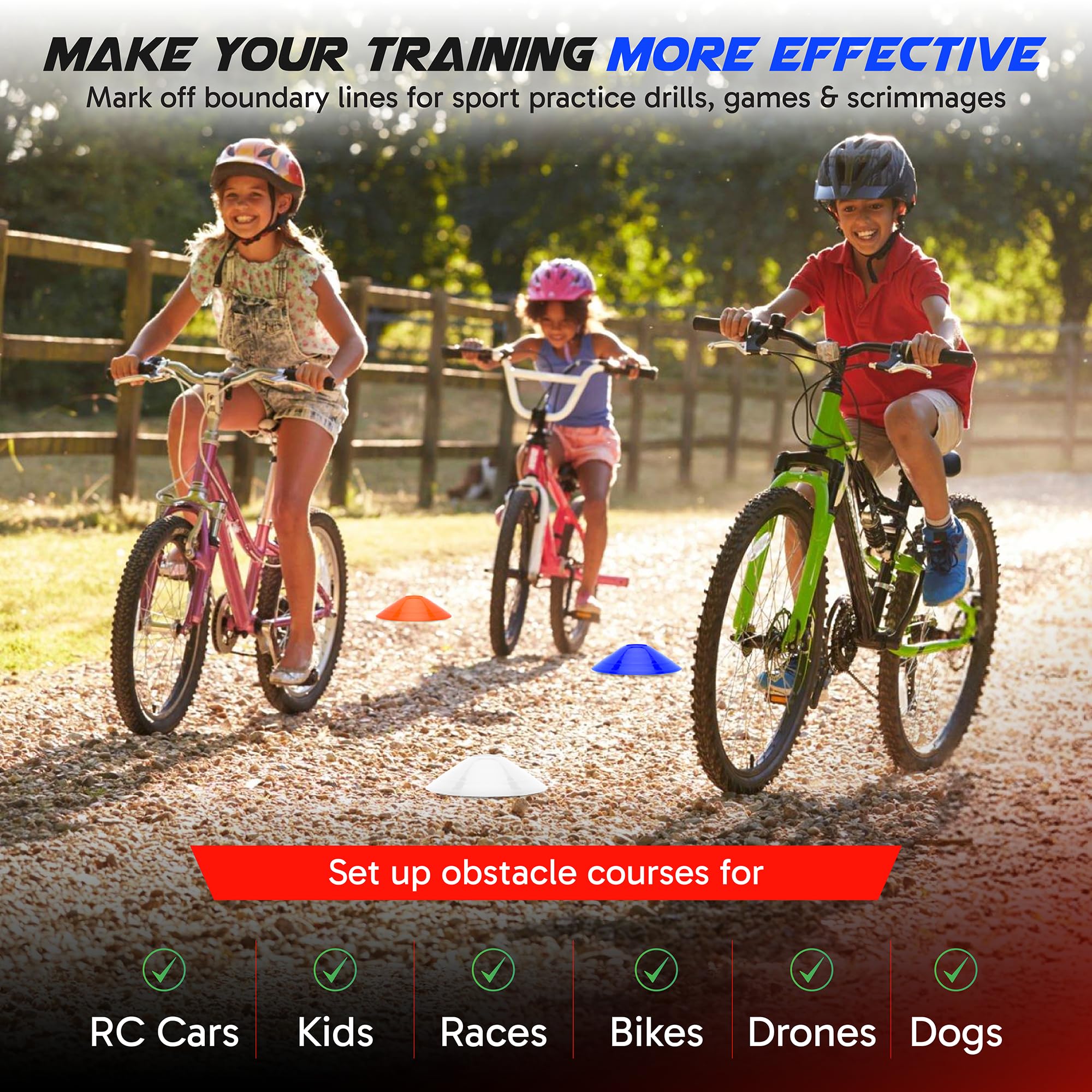 Our soft, low-profile sport cones are approved by coaches, kids and parents. Ideal for soccer training equipment, coaching, drills, practice, football, basketball, dribbling, obstacle courses, or even drone racing gates.