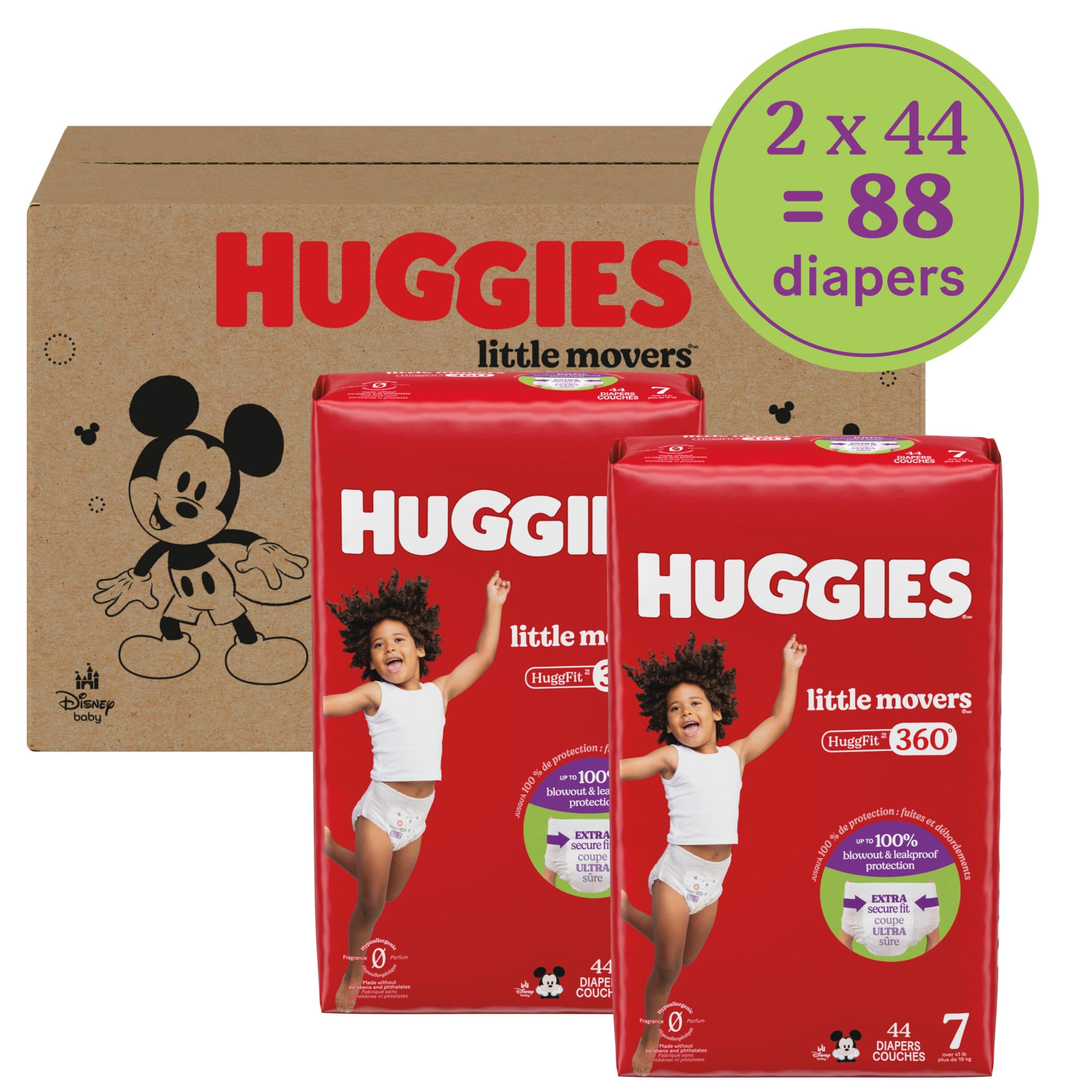 Huggies Size 7 Baby Diapers, 88 Little Movers HuggFit 360° Baby Diapers with 360° Waistband (2 Packs of 44), Size 7 (41+ lbs); packaging may vary
