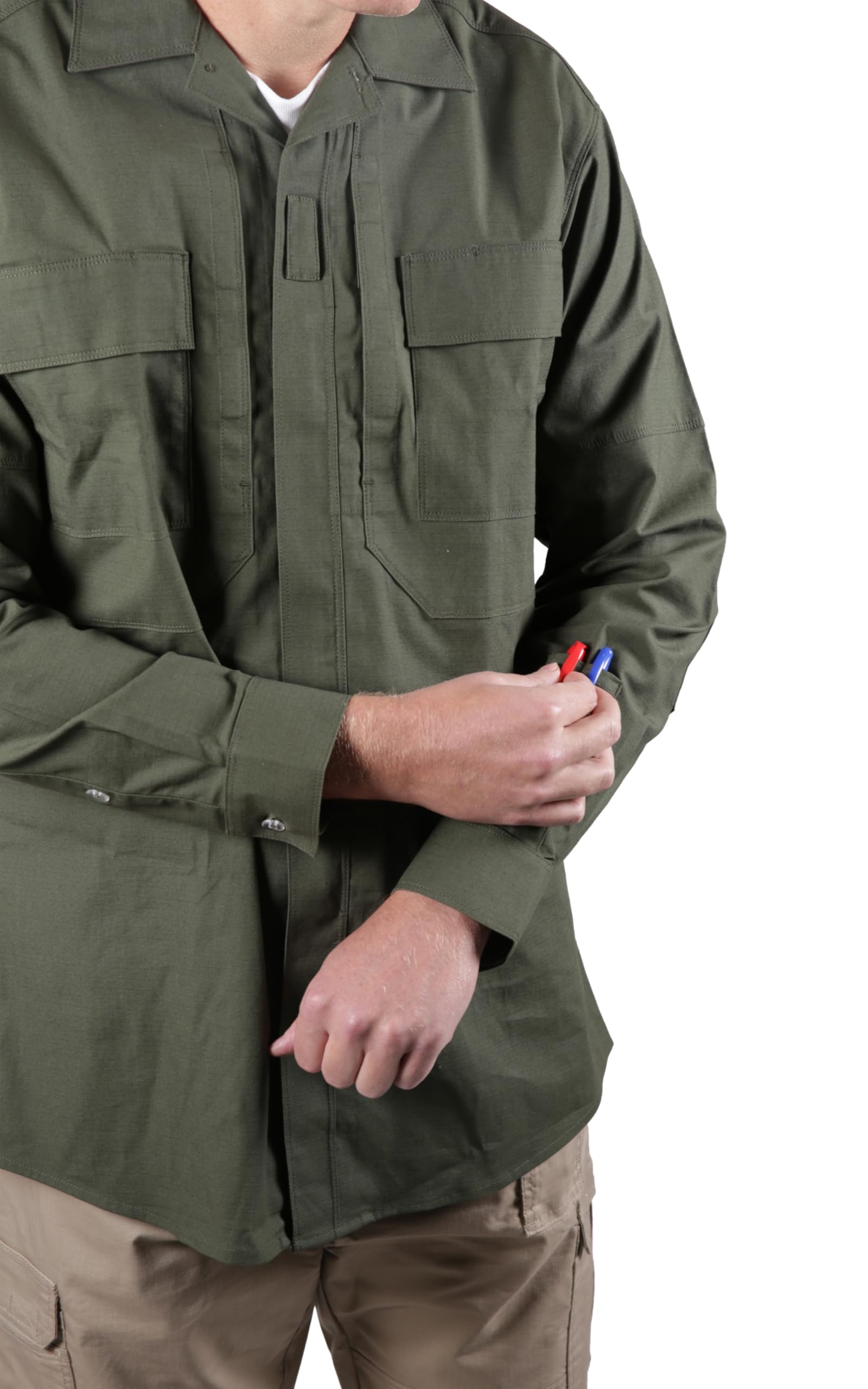 65% Polyester / 35% Cotton Ripstop Experience the superior blend of polyester and cotton ripstop fabric, delivering optimal durability and breathability. Built for resilience, these shirts withstand the rigors of demanding environments