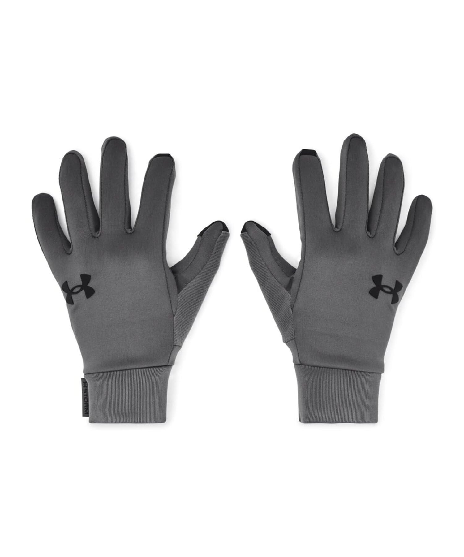 Description UA Storm technology repels water without sacrificing breathability. Thin, fitted liner gloves can be worn on their own or as a first layer. Ultra-soft knit fabric with a smooth exterior & a plush interior for just the right amount of warmth. Tech Touch on thumbs & index fingers so you can use touch screen devices without taking your gloves off. Extra soft Speedwipe™ fleece placed on back of index finger & thumb. 87% Polyester/13% Elastane.