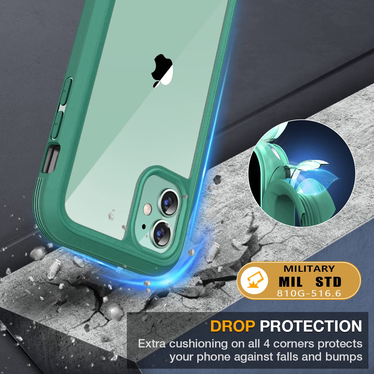 [360° Full-Body Rugged Protection] Full-body protective case for iPhone 11 tested to survive as many drops as a military standard. Flexible TPU materials and Tri-layer structures absorb and deflect impact while blocking dirt, dust. Raised lips around the camera and the screen for added protection against untoward scratches.