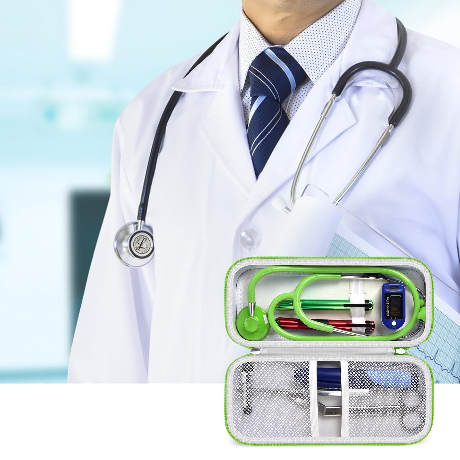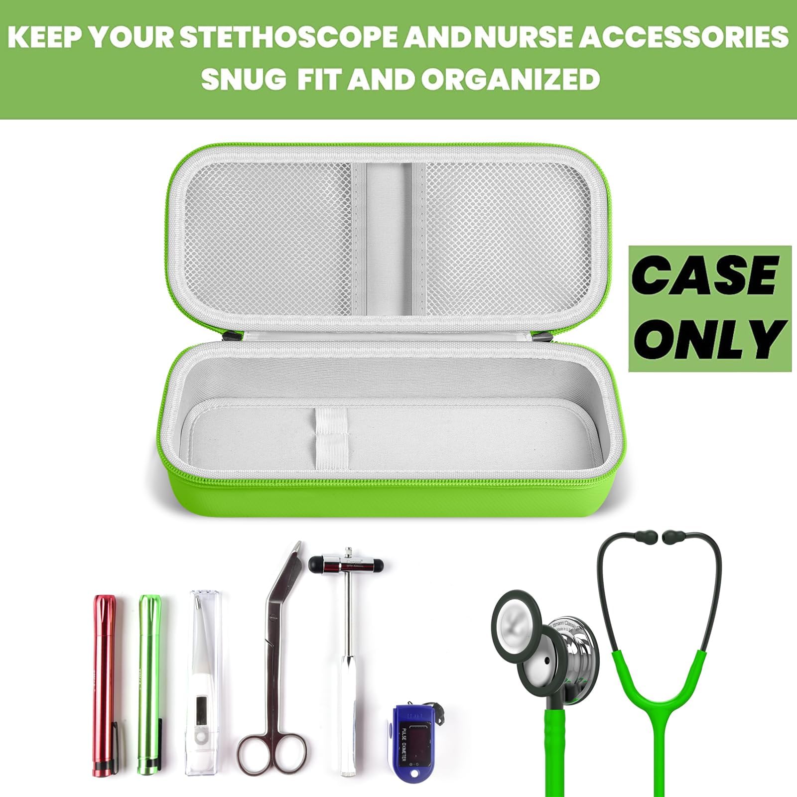 Stethoscope Case of Comprehensive Protection: This case is made of the hard EVA materials, the anti-static, shockproof layer and fluffy fabric inner layer fully padded and effectively absorb impacts, compact fully protect the stethoscope, neurological reflex hammer, medical thermometer, pulse oximeters, and other Littman stethoscope accessories. Prevent shaking and loss; avoid stethoscope breaking.