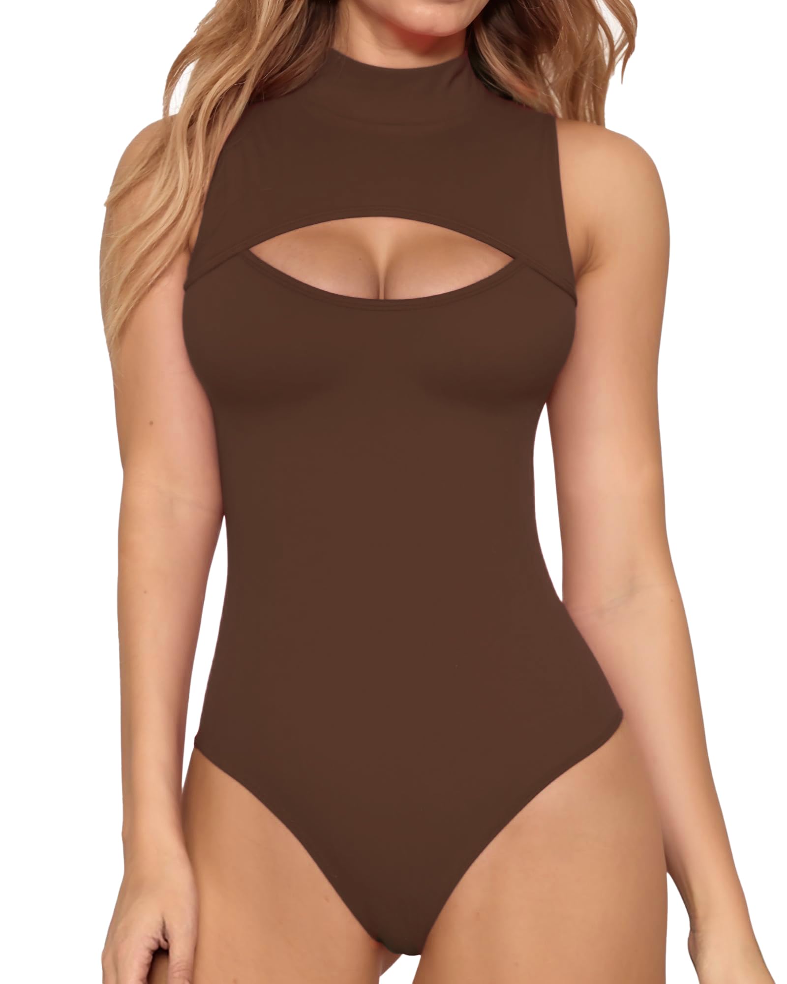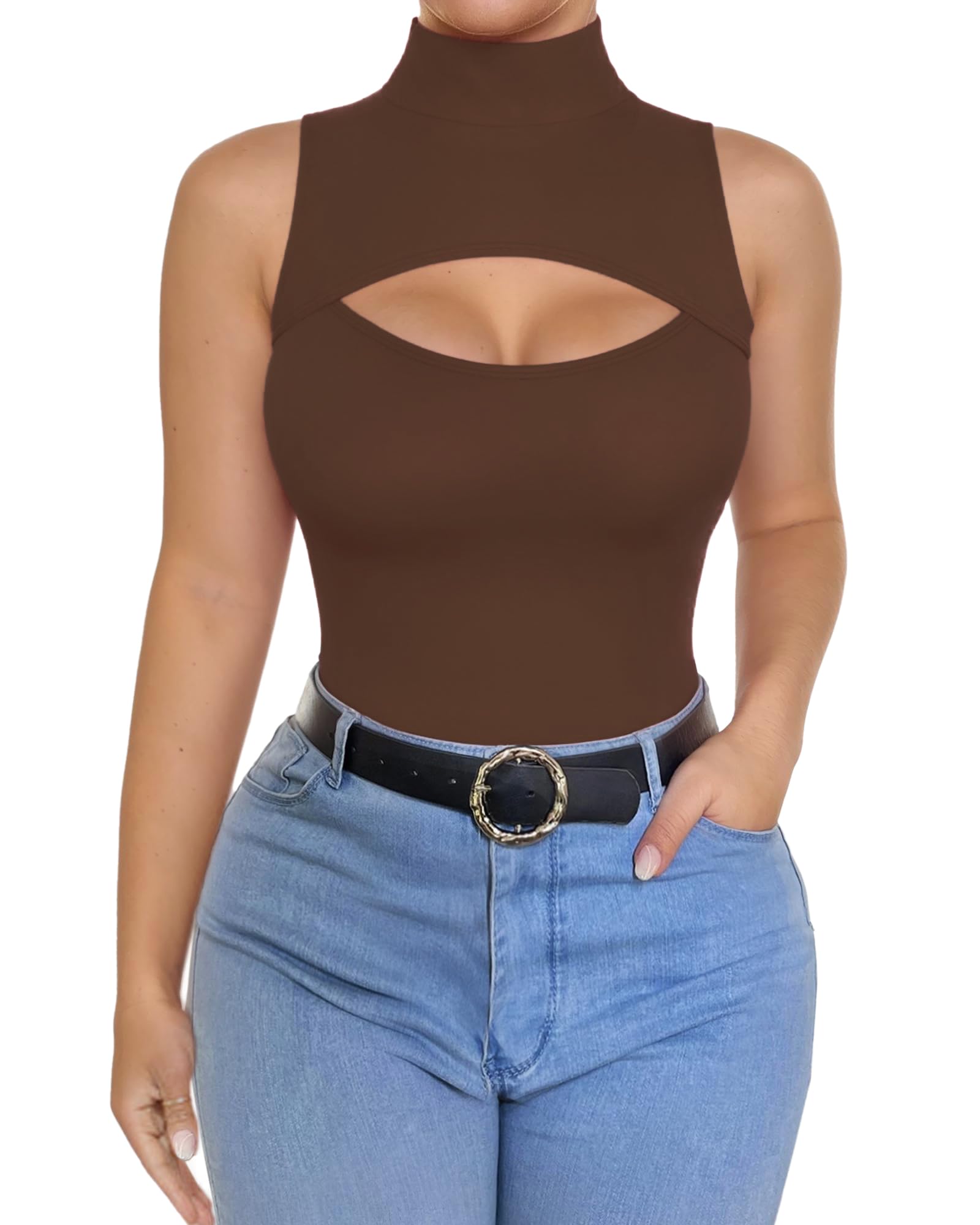 Styling: Sleeveless body suits boast a stretch-fitted style with a mock neck and cut out detailing, offering a slim fit and exuding a casual yet graceful fashion vibe, easily paired with pants, shorts, jeans, skirt, and more