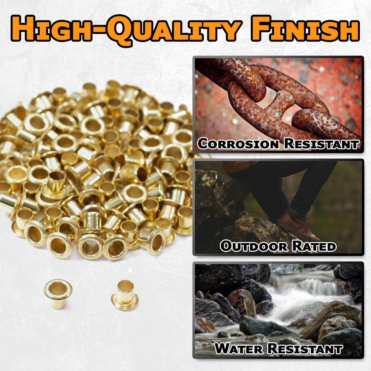 Color/Finish: Polished Brass | (#1 brass finish in the industry!) | These are the industry standard eyelets (sometimes called binding rivets) that are used in DIY thermoform holster and knife sheath making. They are also commonly used in making leather knife sheaths and gun holsters, and can be used in upholstery and garment manufacturing as well.