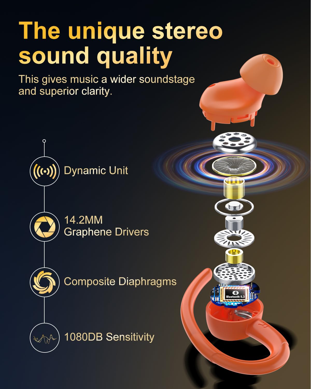Lossless Sound Quality: The YT18 sport bluetooth earbuds are equipped with 14.2mm dynamic drivers, which can provide amazing low-frequency depth, balanced mids and clear highs, making every note and music detail come alive, significantly enhancing your listening experience, the headphones providing stable sound quality even during long-term high-intensity training.