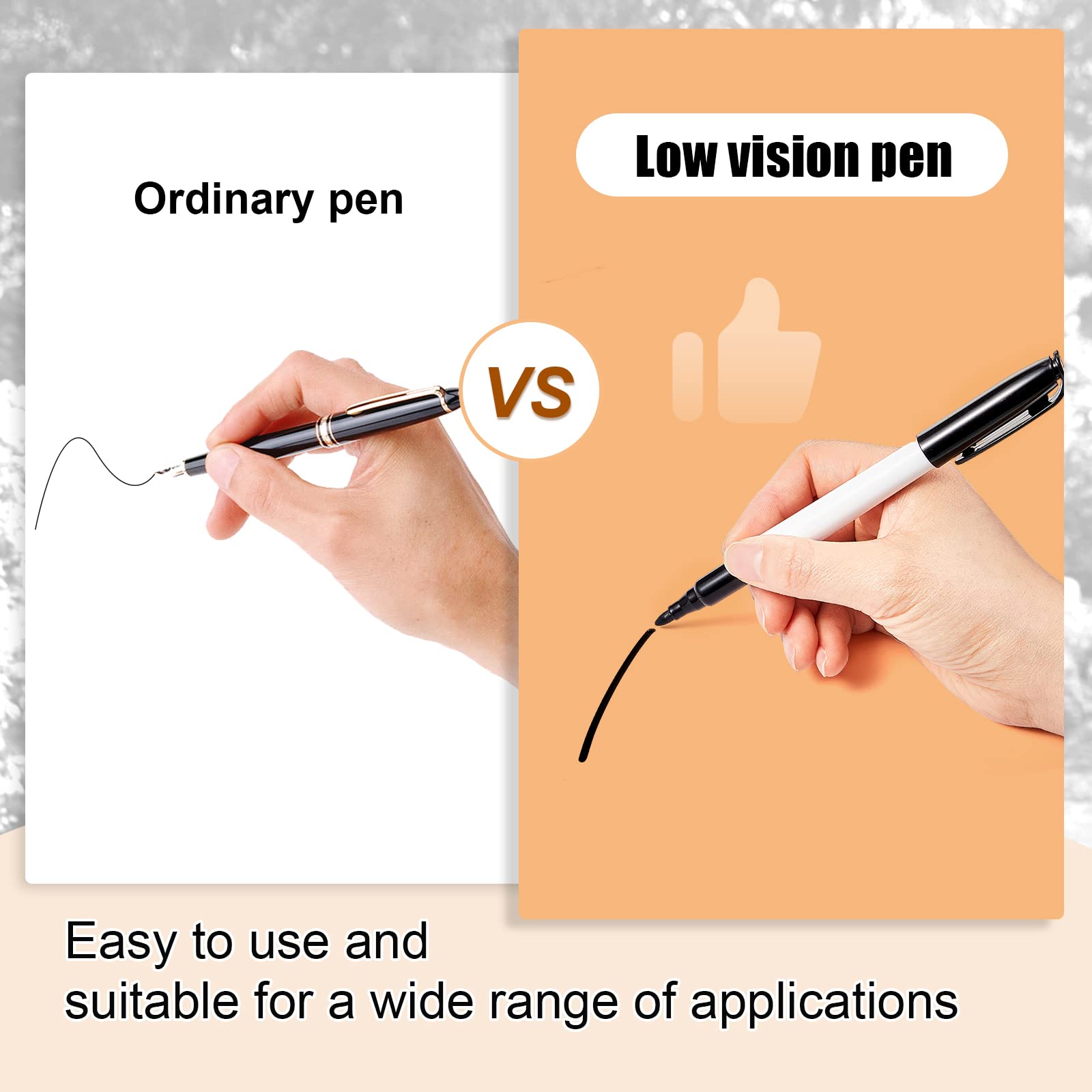 Bold and Clear Writing: the thick tip of the low vision pen allows for bold and clear writing, making it easy to read and comprehend for people with low vision; This feature is particularly helpful for the old or people with visual impairments, enabling them to write and read messages with ease