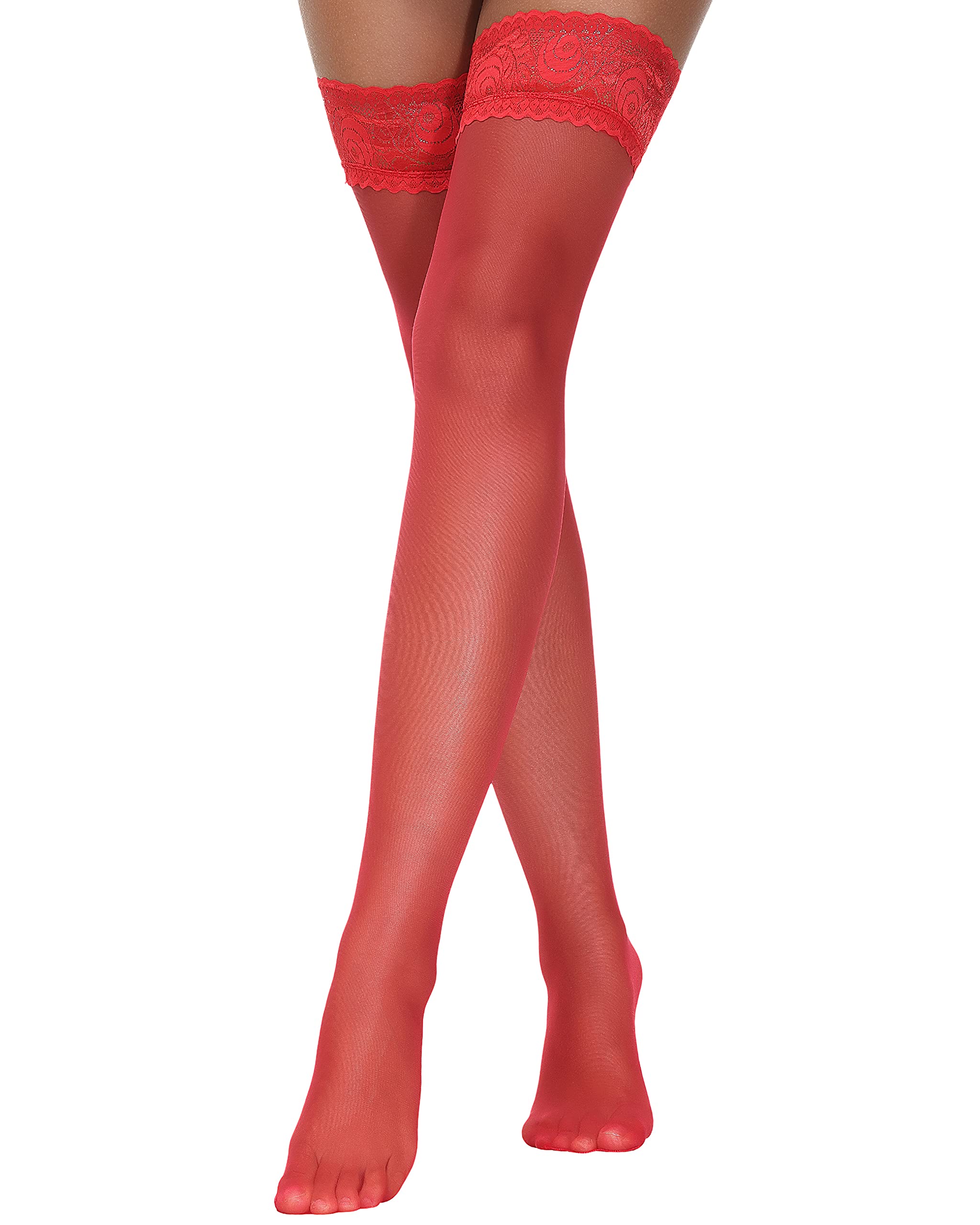 Material: 95% nylon, 5% spandex, made of sheer fabrics of exceptional quality and delicate floral lace top. A grade double silicone skin-friendly breathable anti-skip silicone
