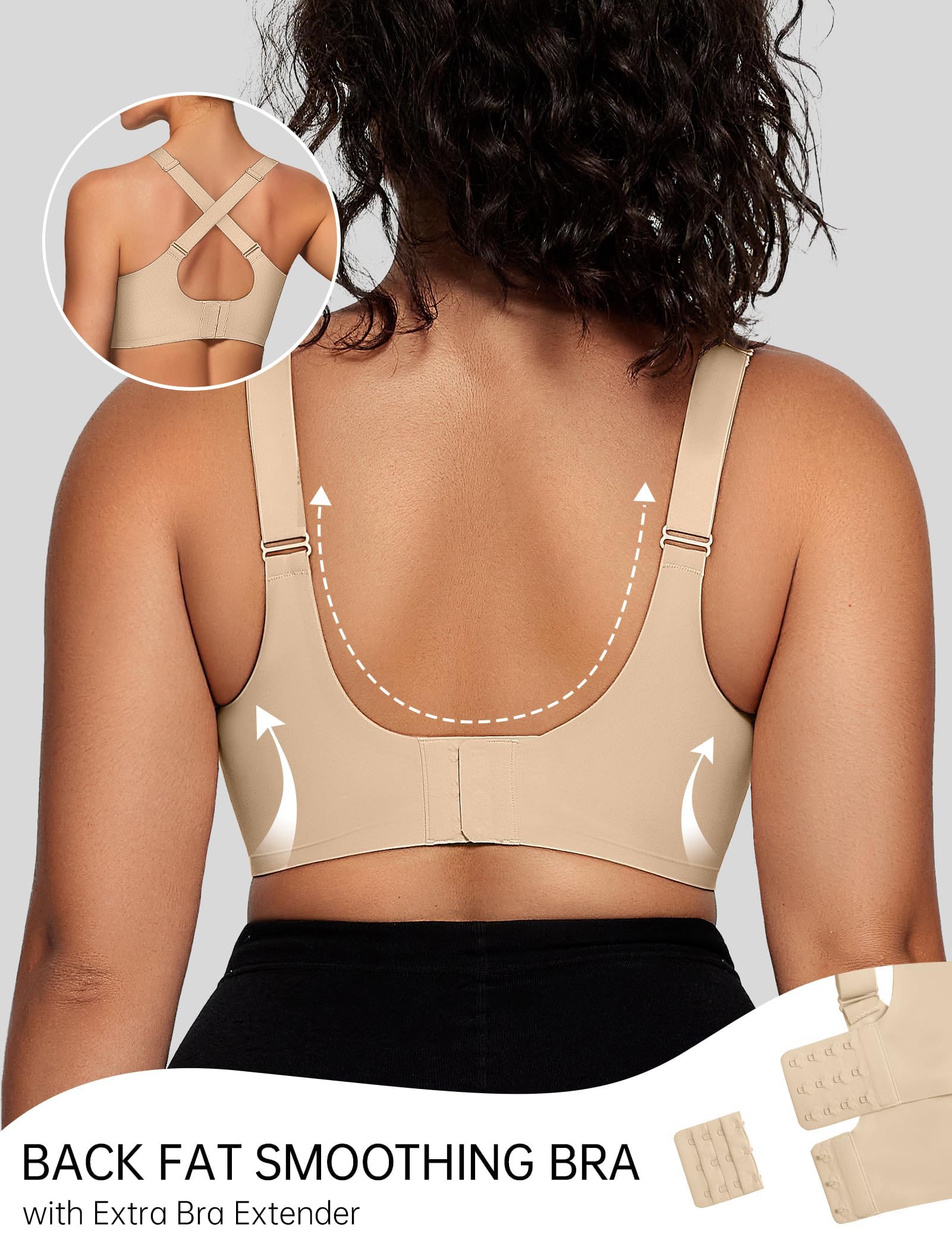 Wireless Bras with Support and Lift - Our wirefree bras feature a W-shaped support and Supportive molded cups around your breasts, giving a nice shape and adequate support for daily life. This comfort bra without underwire means no annoying wire stabbing you in the side, ensuring a buttery soft feeling all day long.