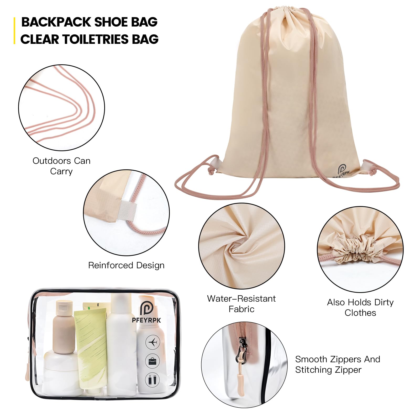【Product Design Details 】This suitcase organizer bag set uses a double zip design to save space and keep everything organized. The additional airline compliant toiletries bag makes it secure and visible. The backpack bag used as a dirty laundry bag or shoe bag is suitable for short trips or outdoor activities.