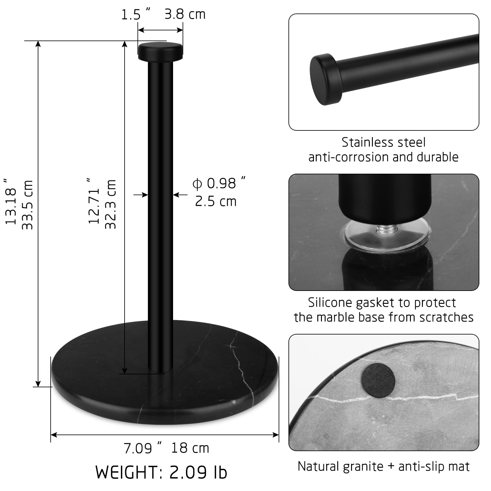 VERSATILITY: We also put 4 non-slip pads on the bottom to prevent the paper towel holder shelf from shifting. The padded bottom will keep your table from getting scratched.Our paper towel bars come in different marble bases, and different metal bars, so you can best match the style of your home.