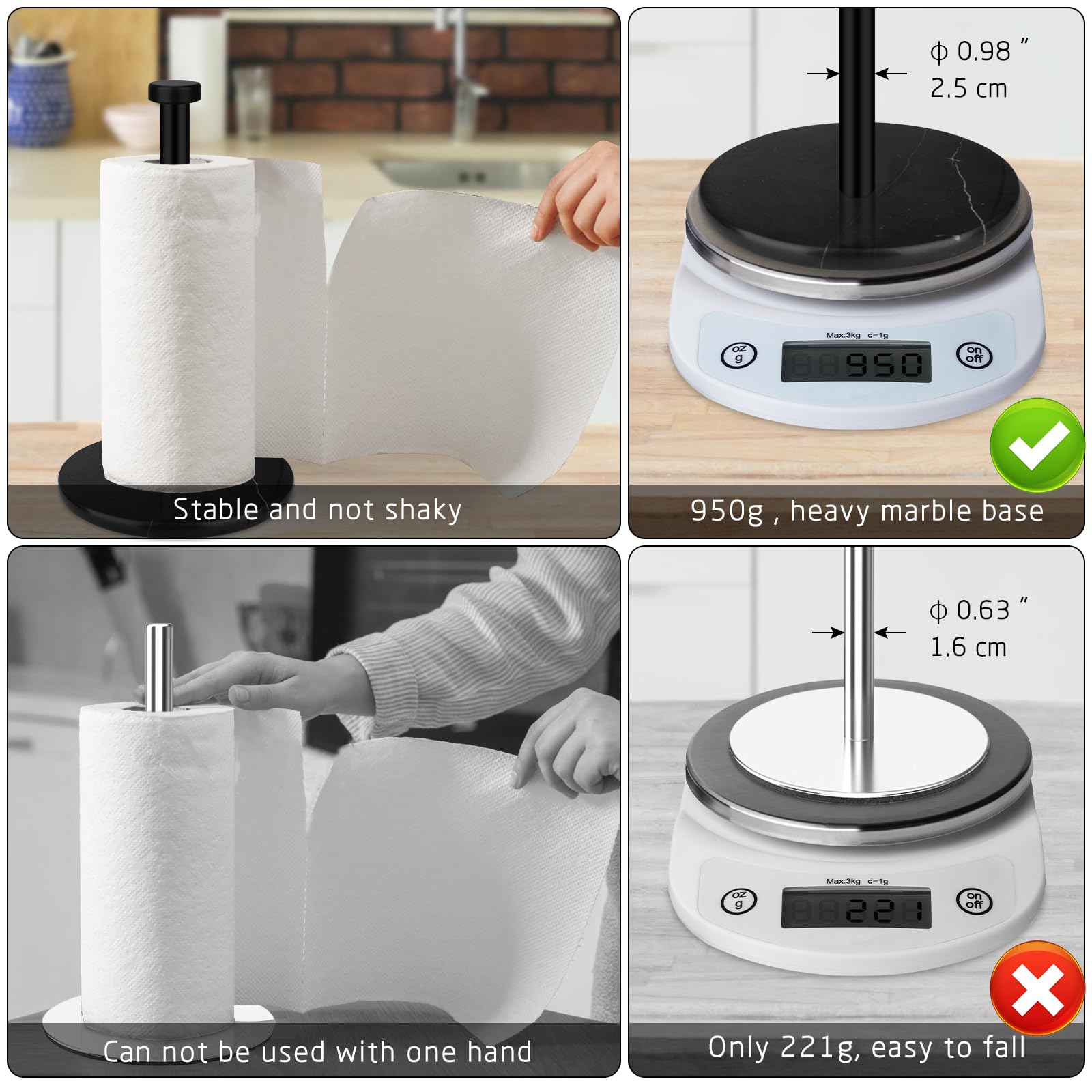 DURABILITY: Natural marble and metal paper towel holders are a stylish and functional addition to any kitchen or bathroom. The combination of natural stone and metal provides a modern and sophisticated look, while the durability of the materials ensure that the holder will last for a long time. With proper care and maintenance, a natural marble and metal paper towel holder can provide years of functionality and beauty.