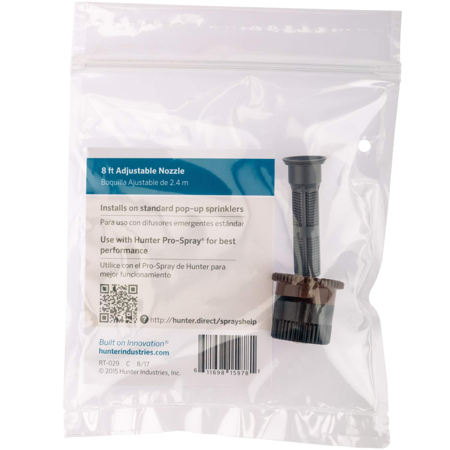 The Hunter 8A Pro Adjustable Spray Nozzle is built for one thing: precise, efficient watering where it counts. Whether you're maintaining garden beds, edging walkways, or refreshing a small lawn, this nozzle delivers even coverage with less waste and fewer headaches. With a fully adjustable arc from 0° to 360° and an 8 foot radius, you can dial in exactly the spray pattern you need, no matter the shape of your space. Engineered to minimize mist and maximize droplet size, it performs consistently even in windy conditions, saving water while keeping your landscape green and healthy. Installation is fast and tool free, snapping securely onto most pop up sprinkler bodies. A built in mesh filter helps prevent clogs, ensuring smooth operation season after season. Ideal for both professionals and home irrigation setups, the Hunter 8A Pro is more than just a replacement nozzle. It’s an upgrade in control, coverage, and confidence.