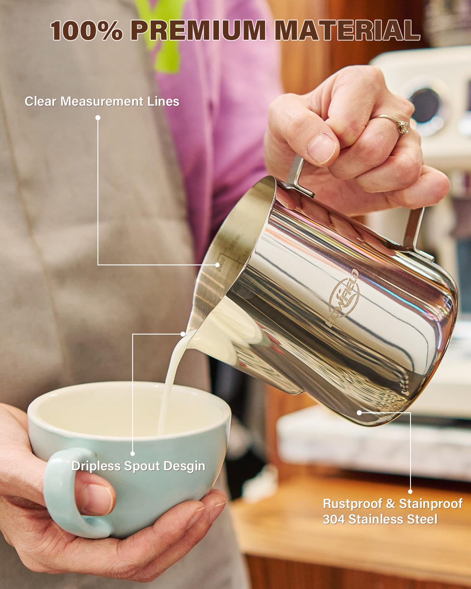Accurate Measurement Markings: Detailed measurement markings on sides help you achieve the perfect milk-to-espresso ratio for any recipe