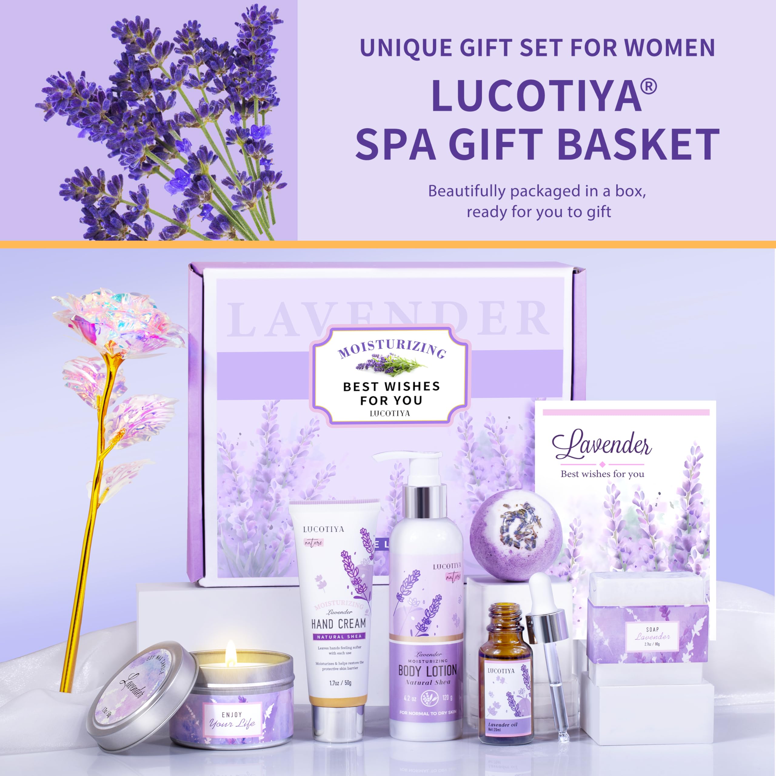 PERFECT GIFTS FOR WOMEN-The Lavender Gift Baskets set is is infused with lavender extract that The romantic aroma will soothe and uplift your body and mind.Makes the perfect birthday gifts for women,relaxation gifts for women,get well soon gifts for women,care package for women,bath sets for women gift, spa gift baskets for women.