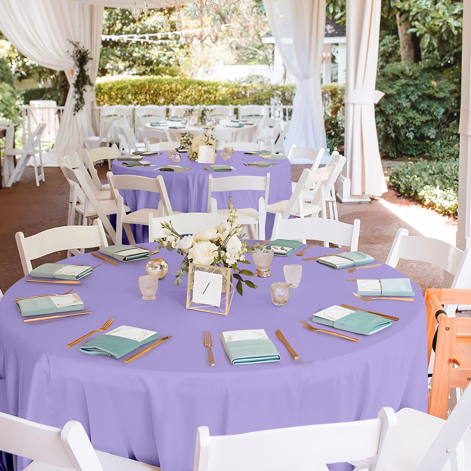 You will receive 2 pcs of round Lavender tablecloth, perfect for party decorations with various baby shower wedding bridal shower birthday party that bring fun to your party. (84 Inches round)
