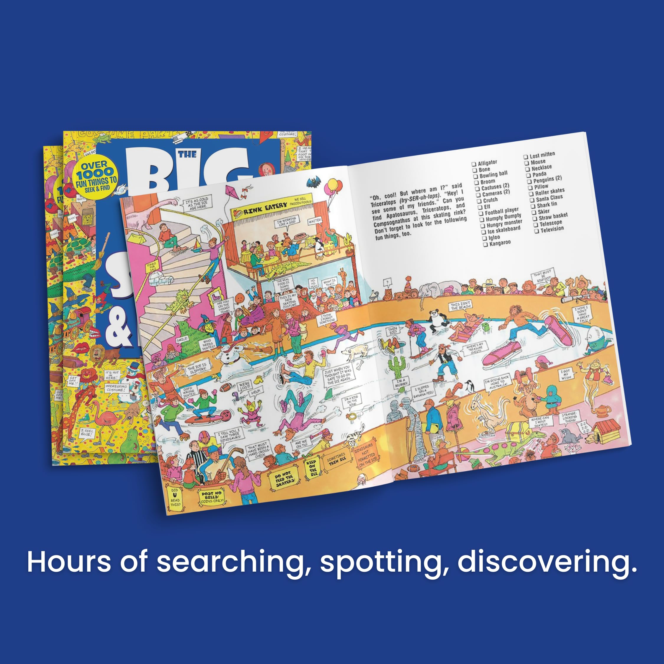 A Spooky Seek & Find Adventure for Curious Kids: The Big Book of Seek & Find is packed with thousands of hidden objects tucked into vibrant, slightly spooky scenes, from mysterious castles and monster kitchens to creepy caverns and ghostly playgrounds. Each page offers a thrilling adventure that kids will love exploring again and again. If your child enjoys a touch of the eerie and mysterious, this book is sure to be a hit. Boosts Focus, Observation & Problem-Solving: This hidden object picture puzzle book for kids is a fantastic way to improve visual perception, critical thinking, and attention to detail. With every item they spot, kids sharpen their learning skills in a fun, screen-free format. Perfect Travel Companion & Screen-Free Entertainment: Whether youβre heading on a family vacation, taking a road trip, or flying across the country, this book is a must-have. Itβs one of the best books for long car rides and books for airplane travel, providing hours of screen-free entertainment. As one of the top picture puzzle books for kids, itβs a great way to keep little minds busy and engaged wherever you go. Great for All Ages & Family Bonding: While designed with kids ages 7-9 in mind, this book is great for all ages, even teens, adults, and seniors love the relaxing and brain-training benefits. Great for children and parents to enjoy together, this hidden picture promotes teamwork and interactive play, and the fun challenges make it a perfect gift for birthdays, holidays, or anytime fun. Whether itβs a fun solo activity, or a screen-free alternative to tablets, this book fits the bill. The fun, slightly spooky theme makes it ideal for those who enjoy monster tales, creepy creatures, and brain-teasing games. Parents of more sensitive children may want to preview the content first. Encourages Learning & Love of Discovery: With delightful illustrations and varied search challenges, kids build patience, attention to detail, and cognitive skills. Whether playing solo or with family, this book guarantees hours of educational fun. Start the search and find adventure today! Why Parents Love This Spooky Seek & Find Book: β’ Packed with hidden picture puzzles kids canβt put down β’ Encourages focus and critical thinking skills β’ Gender-neutral fun for boys & girls β’ Perfect boredom buster for travel or cozy at-home play β’ Great gift for birthdays, holidays, or Halloween A classic edu-tainment resource, The Big Book of Seek & Find sharpens observation and concentration skills. The comical characters, situations and comments will keep children engaged and entertained for hours. With thousands of fun things to seek and find, it's the most fun-filled activity book ever created for kids of all ages! Complete Your Collection: Love The Big Book of Seek & Find? Donβt miss the other two fan-favorites in the same series! Each book features a different set of wild, wacky scenes and new objects to find, perfect for kids, adults, and anyone who loves a good visual challenge. Complete your collection and enjoy endless hours of screen-free fun!