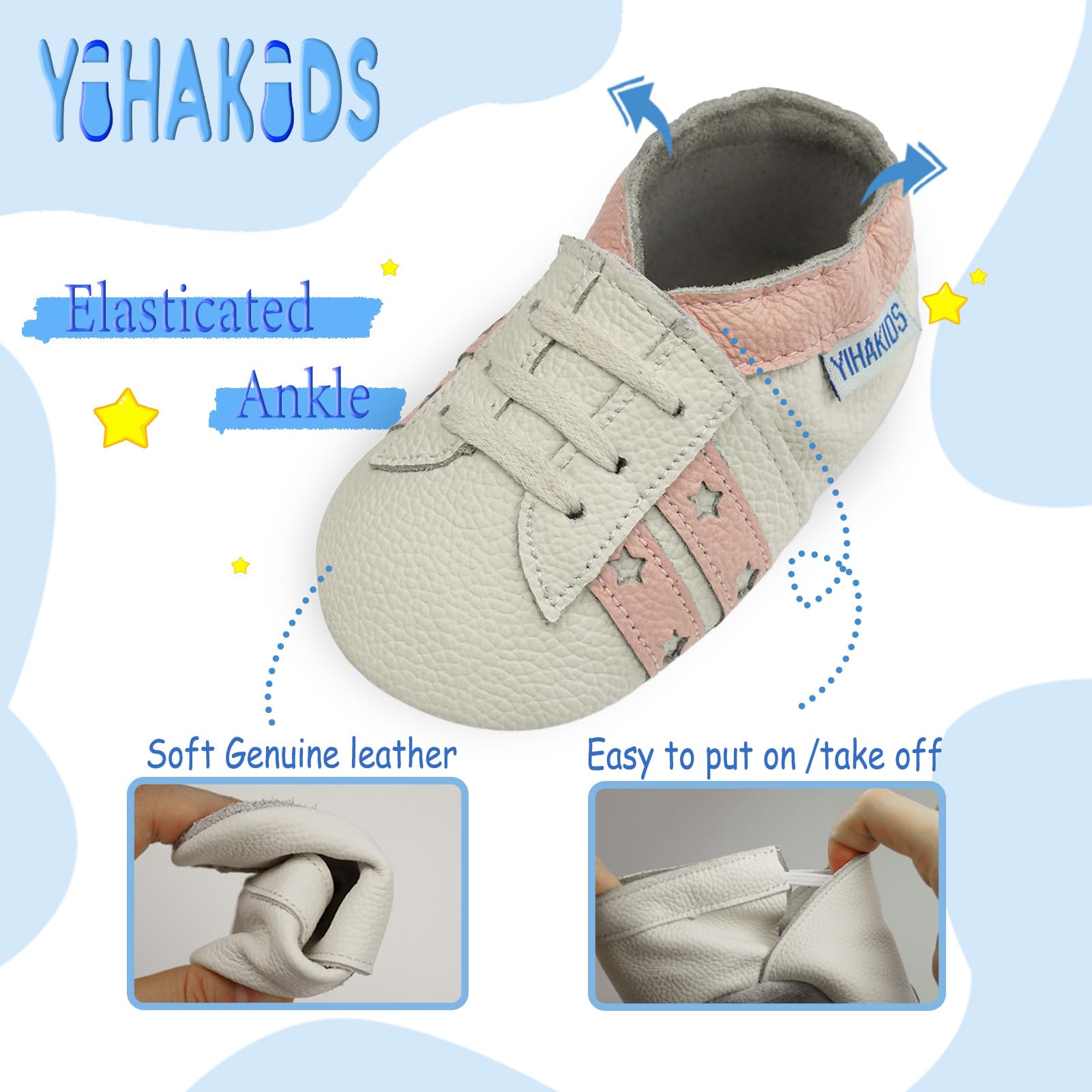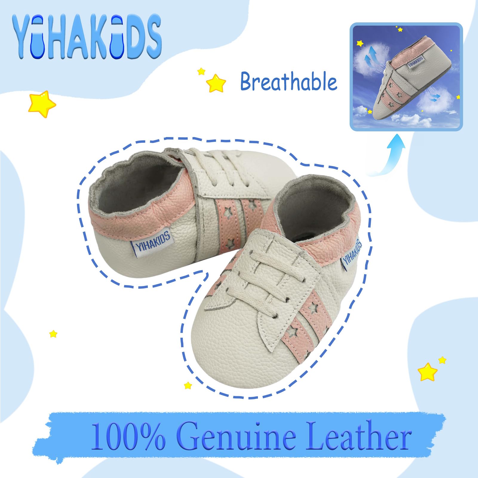 SOFT LEATHER: YIHAKIDS baby leather shoes are made of flexible soft genuine cowhide leather with a non slip suede sole. It’s perfect for baby naturally crawling, first walking,learning how to walk and growing.