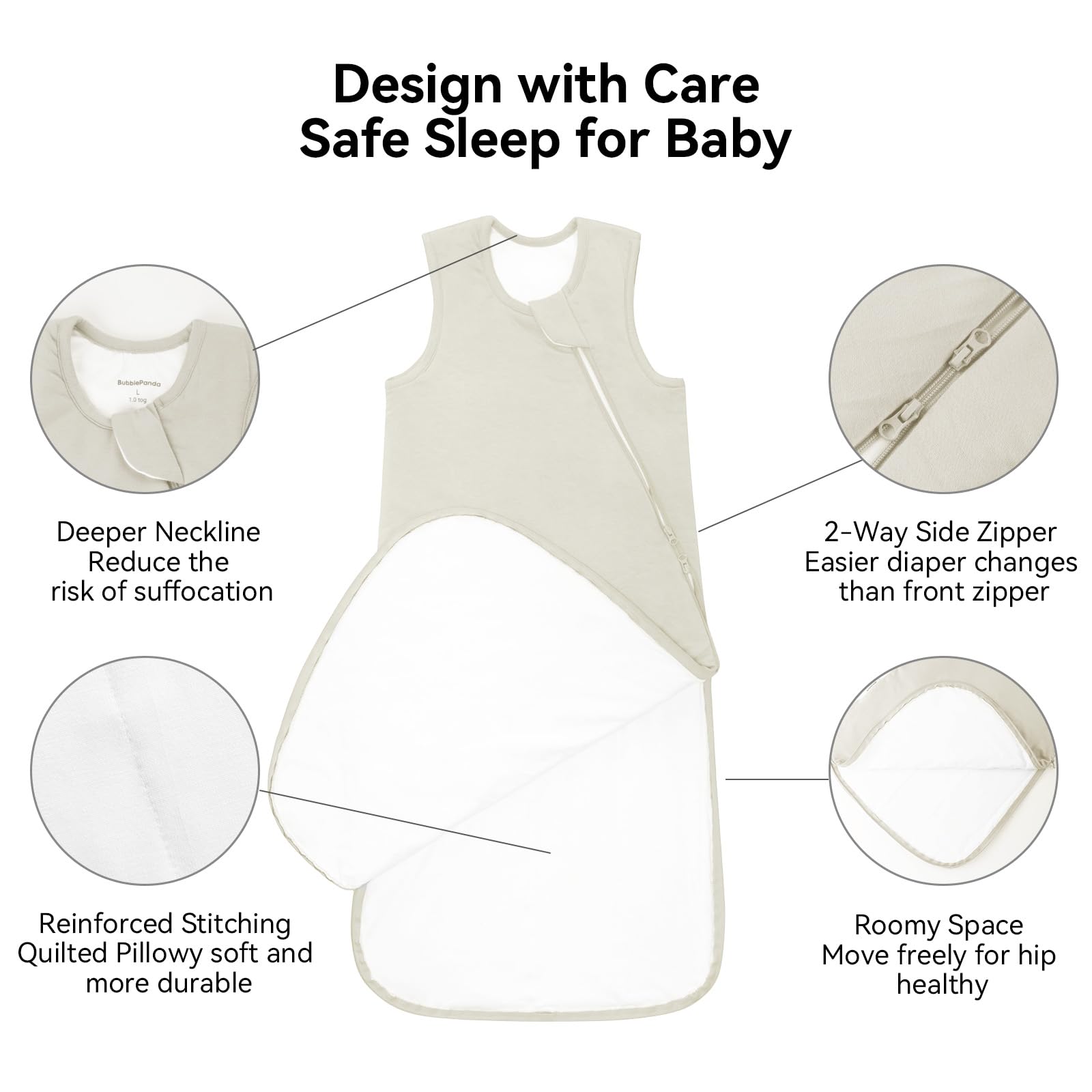SAFE FOR BABY - We prioritize your baby's safety. The sleep sack features a deeper and narrower neckline to prevent any loose fabric that could pose a suffocation hazard. A zipper protector shields your baby's face from scratching. Our breathable fabric reduces the risk of overheating, making it suitable for year-round use.