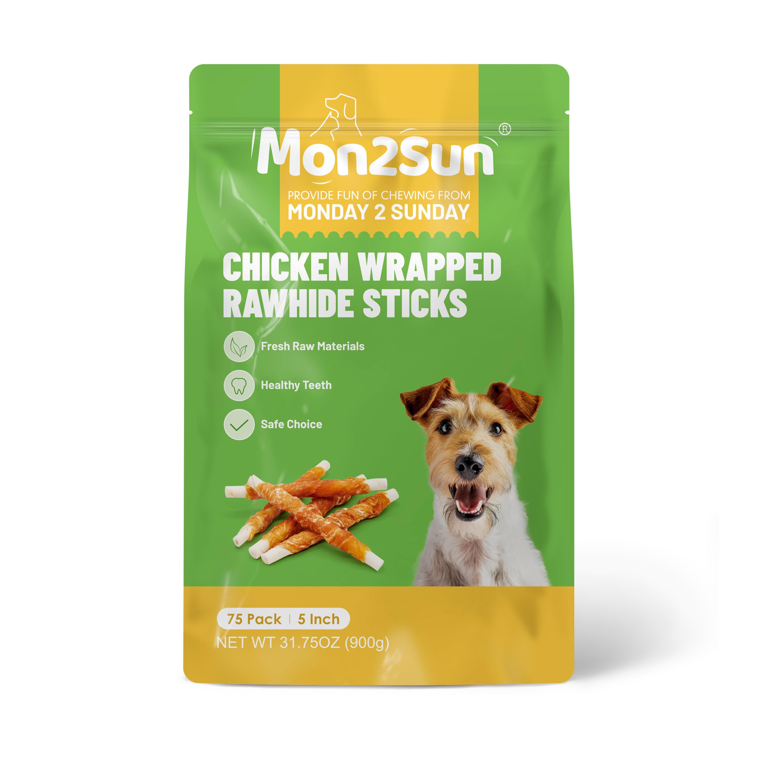 Chicken dog rawhides provide fun chewing enjoyments for your dogs and promote dogs' teeth healthy. Have less plaque and tartar.