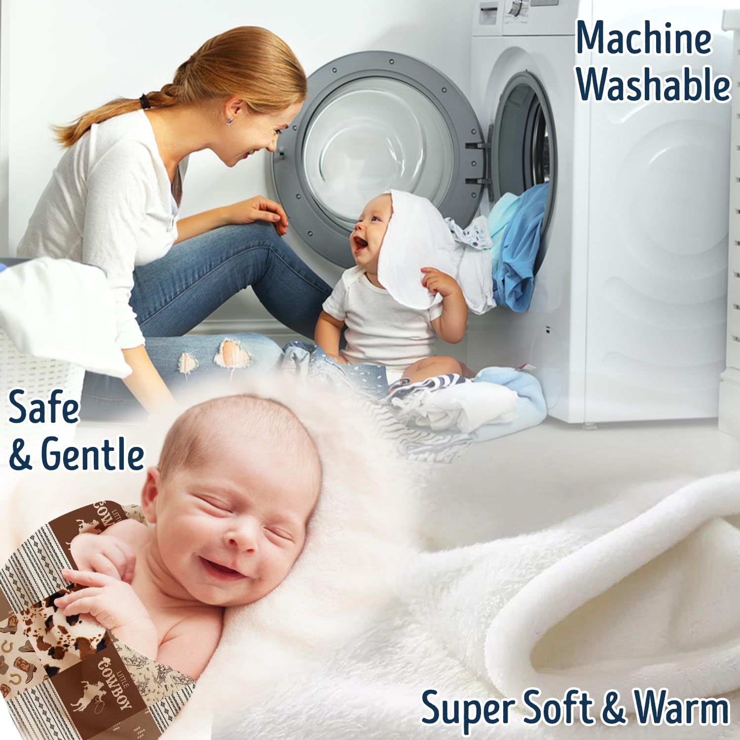 SOFT FABRIC: Made from 100% soft and silky polyester, this cowboy baby blanket provides unparalleled comfort for your baby's delicate skin. Its gentle texture offers a cozy and soothing touch, making it perfect for snuggling, napping, and playtime.