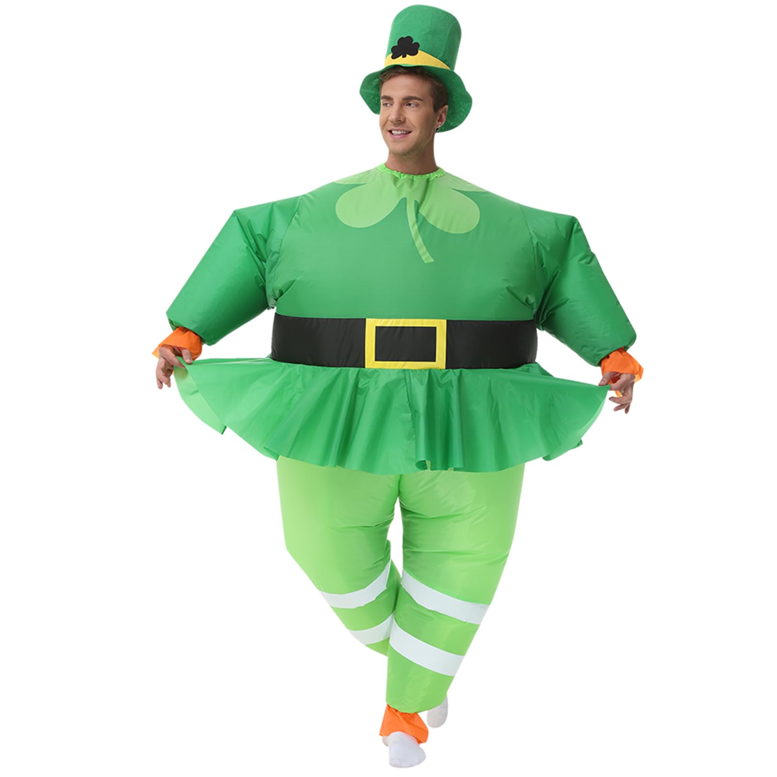 LEPRECHAN COSTUME ADULTS MATERIAL:patrick costume adult leprechaun costume women made of good quality Polyester ,saint patrick inflatable costume soft and waterproof material design can be easily inflated leprechaun costumes for adults when the fan starts to work,inflatable costume adult costume have fun with your friends and parents